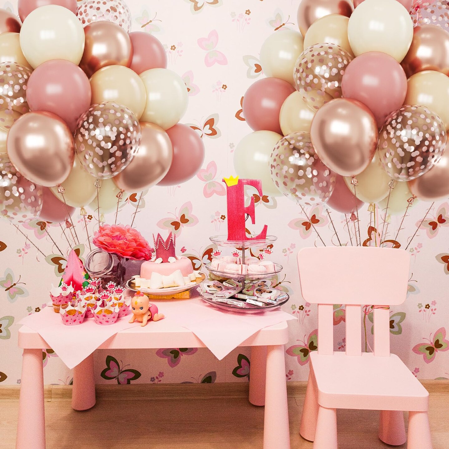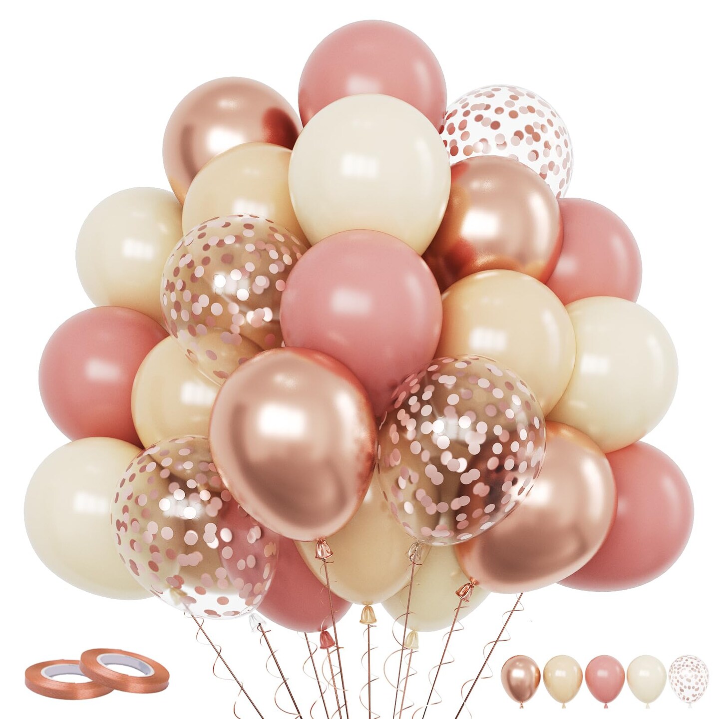 Retro Blush Pink Balloons Set, 60PCS Dusty Pink Birthday Balloons, 12Inch Chrome Rose Gold Balloons Beige Nude Latex Balloon for Girls Birthday Bridal Baby Shower Wedding Boho Party Decoration