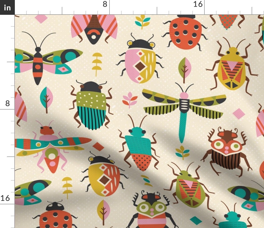 Retro Bugs Butterfly Beetles Nature Colorful Insects Dragon Fly Custom Printed Fabric by Spoonflower Various Fabrics by the Yard or Fat Quarter