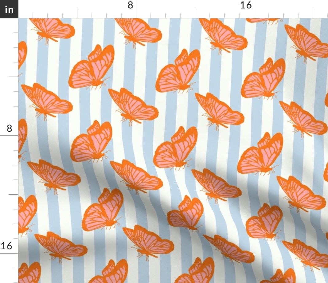 Retro Butterfly Y2K Stripes Maximalist Custom Printed Fabric by Spoonflower Various Fabrics by the Yard or Fat Quarter