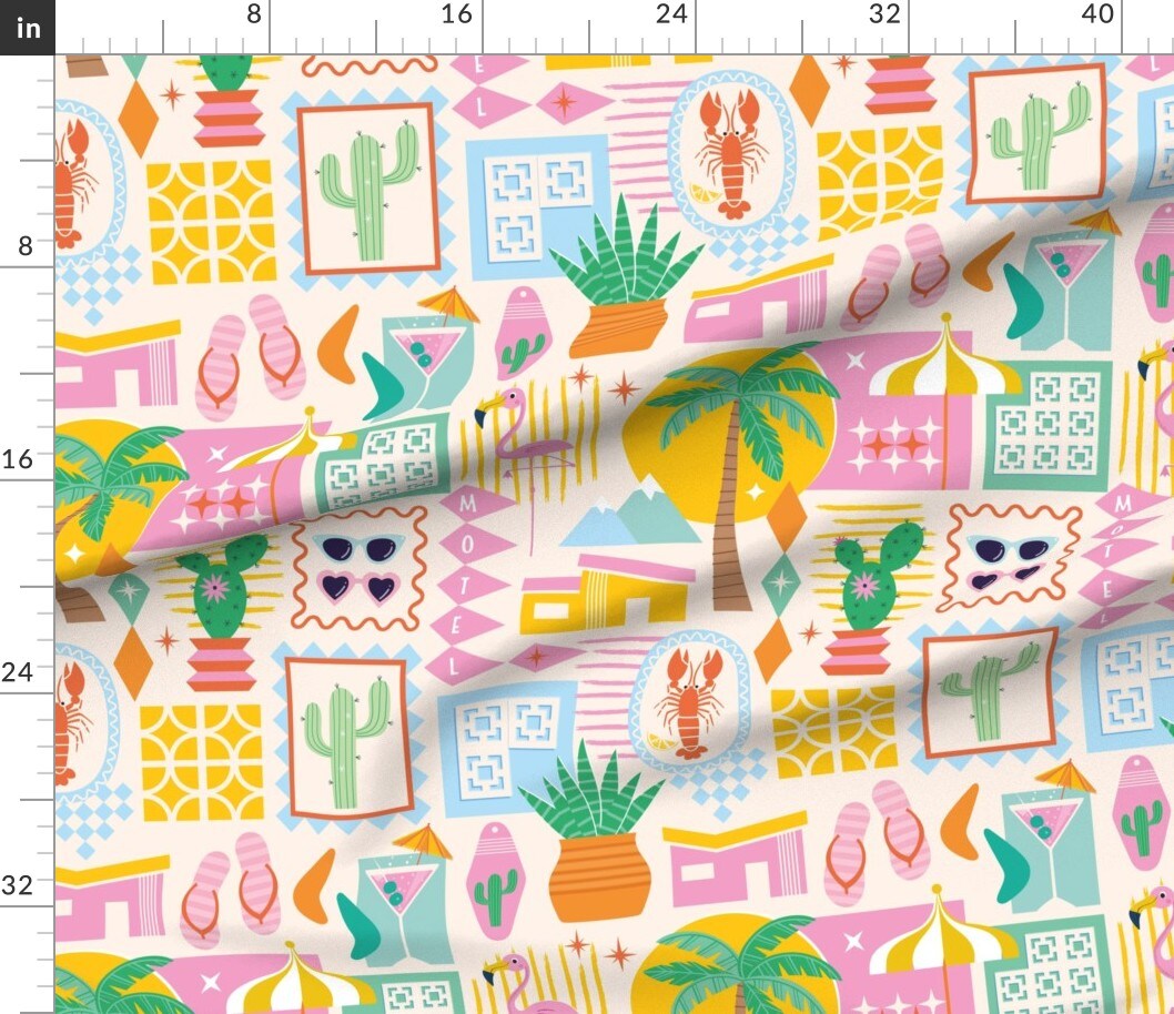 Retro Cactus Sunglasses Motel Palm Trees Crab Flip Flops Mid Century Diamonds Summer Custom Printed Fabric by Spoonflower Various Fabrics by the Yard or Fat Quarter