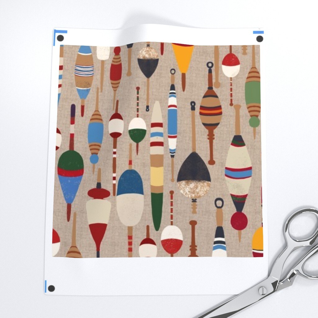 Retro Camping Lake Fishing House Bobber Tackle Vintage Camp Summer Nautical Cabincore Fisherman Colorful Custom Printed Fabric by Spoonflower Various Fabrics by the Yard or Fat Quarter