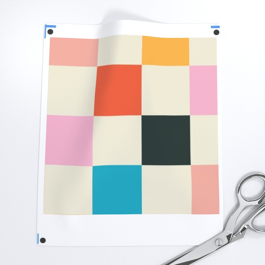 Retro Checkerboard Pink Orange Modern Multicolor Checker Check Custom Pre-pasted Wallpaper by Spoonflower Pre-Pasted Wallpaper 2FT Wide