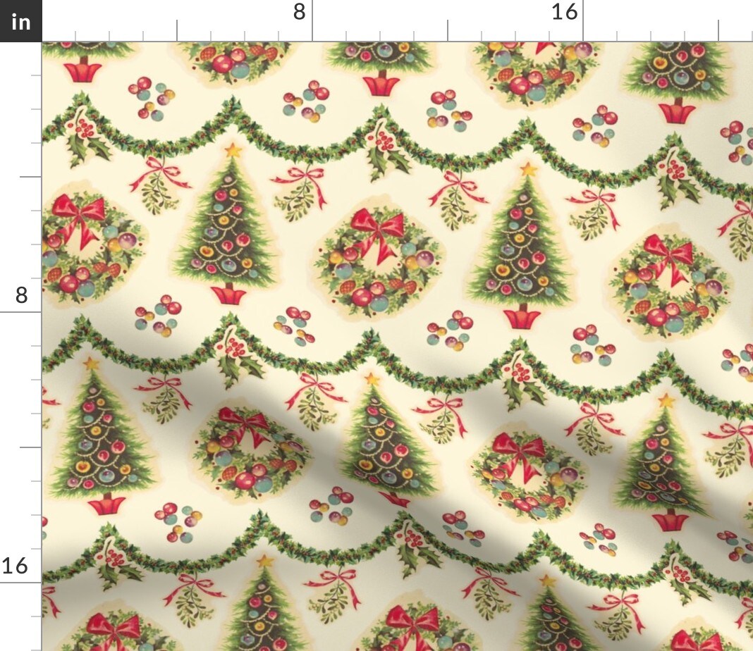 Retro Christmas Christmas Trees Holly Wreaths Vintage Inspired Nostalgic Holiday Custom Printed Fabric by Spoonflower Various Fabrics by the Yard or Fat Quarter