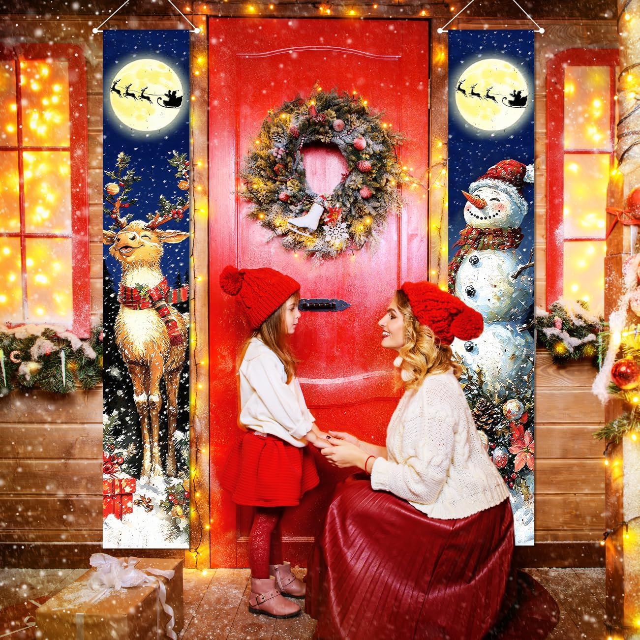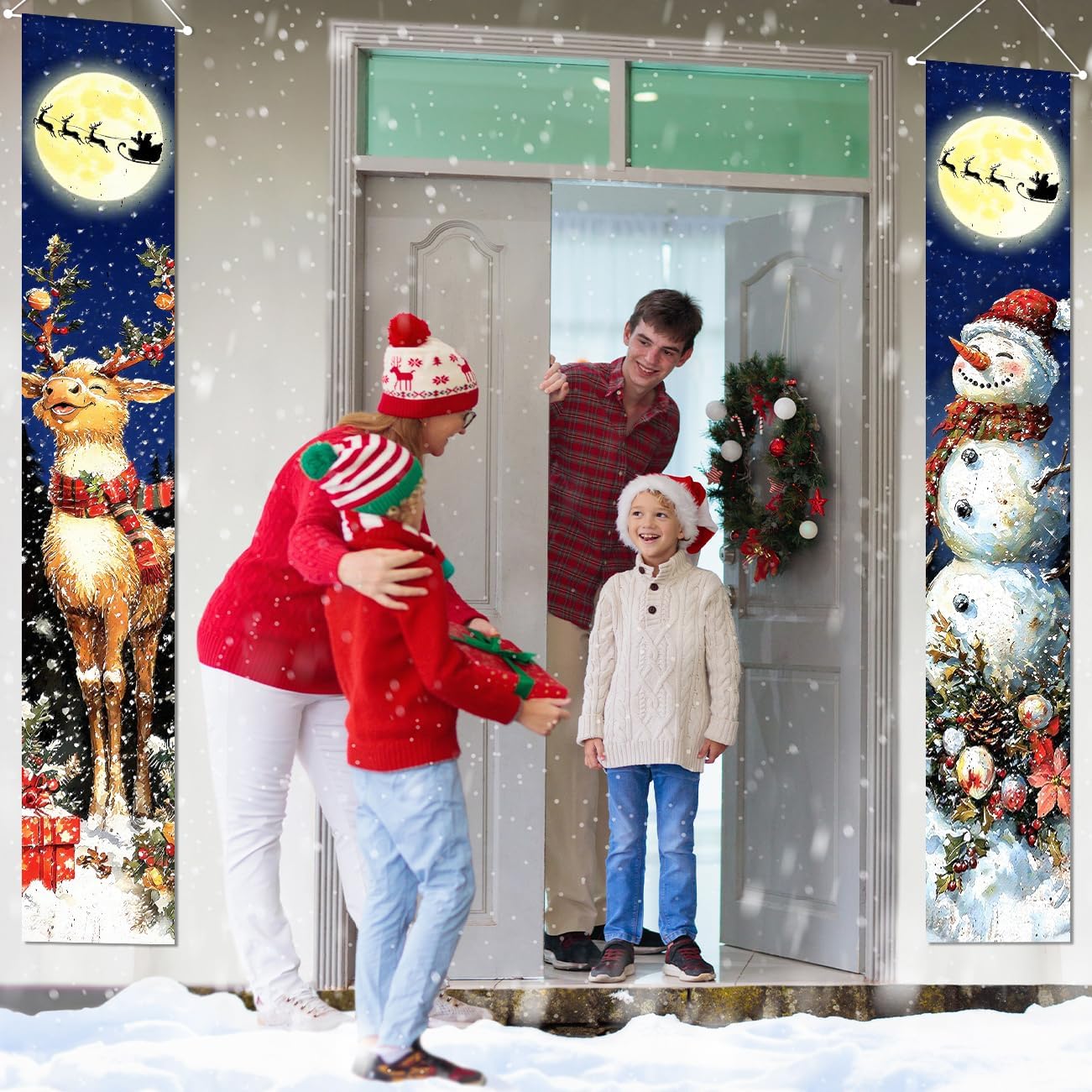 Retro Christmas Decorations Merry Christmas Door Banner(Blue)71"L x 12"W
