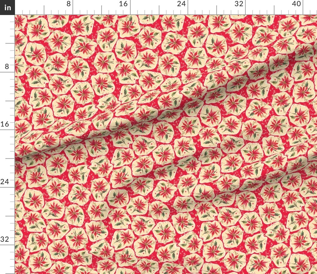 Retro Christmas Floral Merry Mid Century Vintage 1950S Nostalgic Decals Custom Printed Fabric by Spoonflower Various Fabrics by the Yard or Fat Quarter