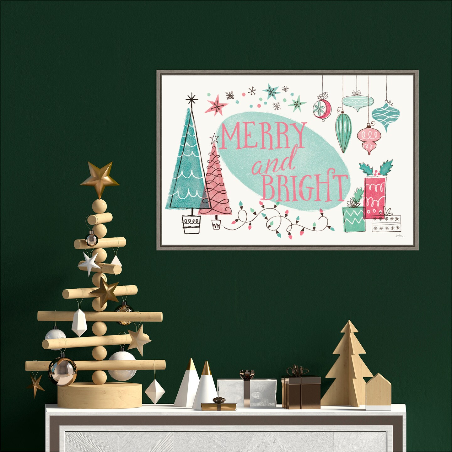 Retro Christmas I Bright by Janelle Penner 23-in. W x 16-in. H. Canvas Wall Art Print Framed in Grey