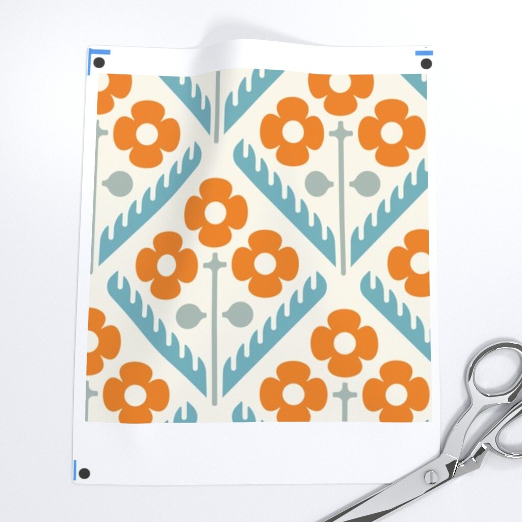 Retro Flowers Orange Blue 70S Mid Century Abstract Floral Custom Printed Fabric by Spoonflower Various Fabrics by the Yard or Fat Quarter