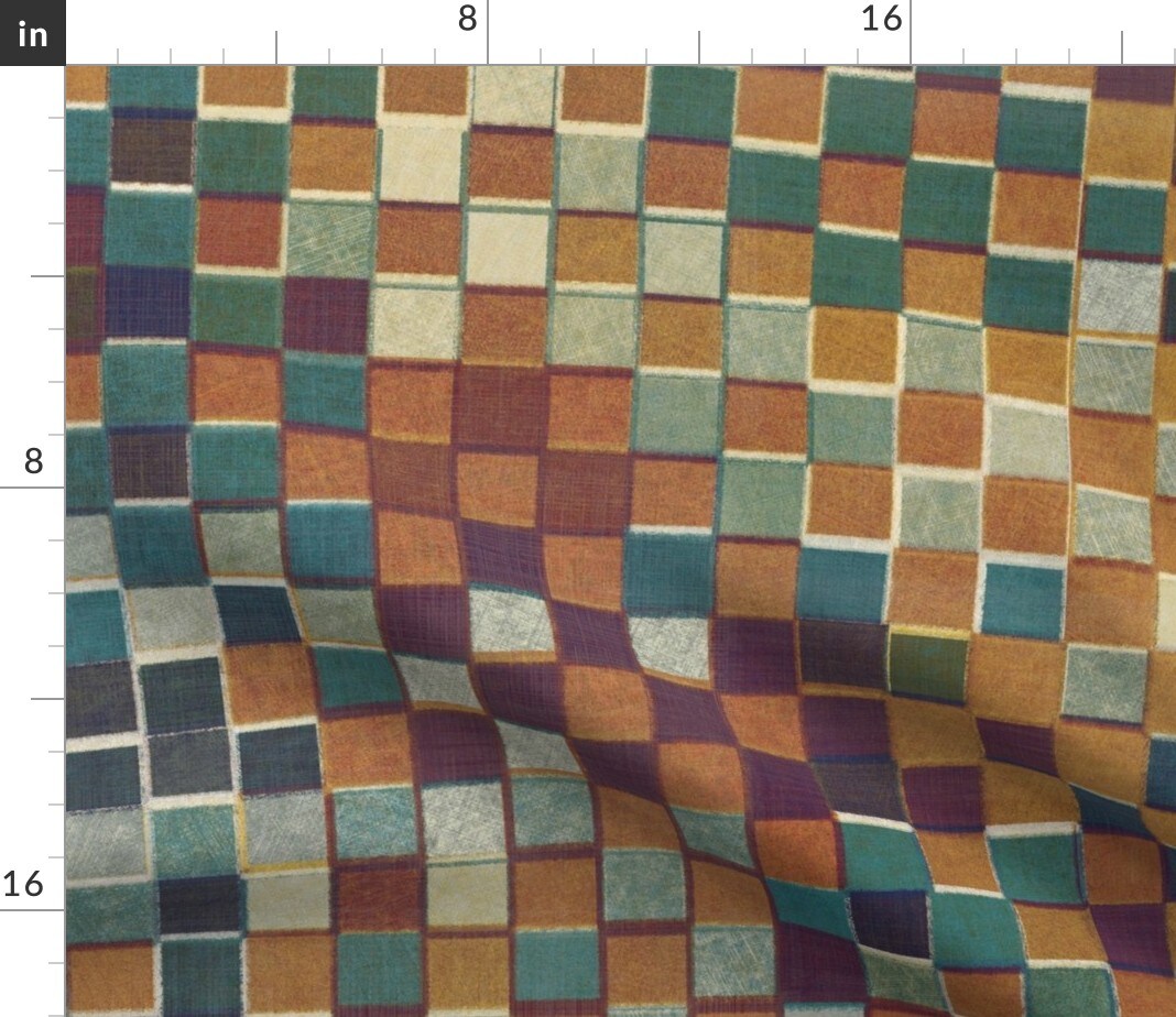 Retro Geometric Orange Gray Grid Squares Checkered Rust Checks Bauhaus Custom Printed Fabric by Spoonflower Various Fabrics by the Yard or Fat Quarter