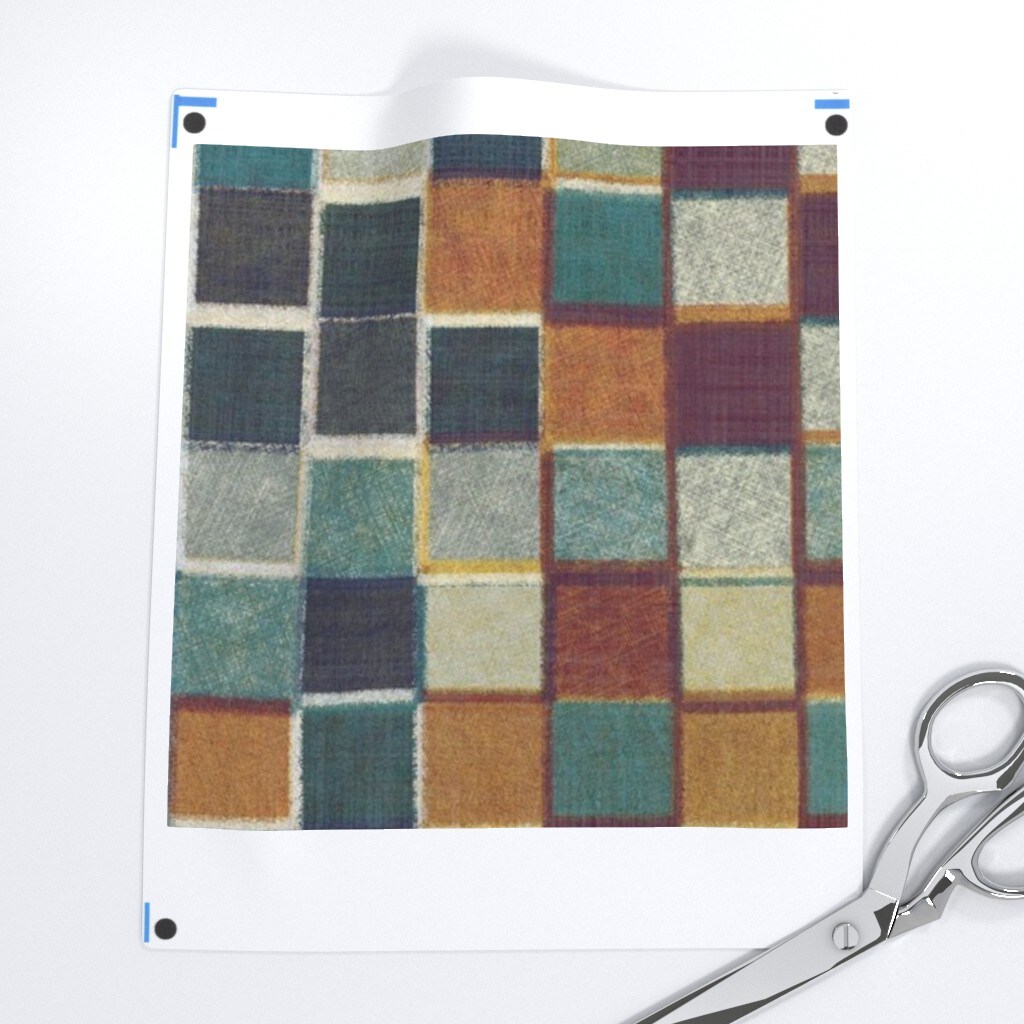 Retro Geometric Orange Gray Grid Squares Checkered Rust Checks Bauhaus Custom Printed Fabric by Spoonflower Various Fabrics by the Yard or Fat Quarter