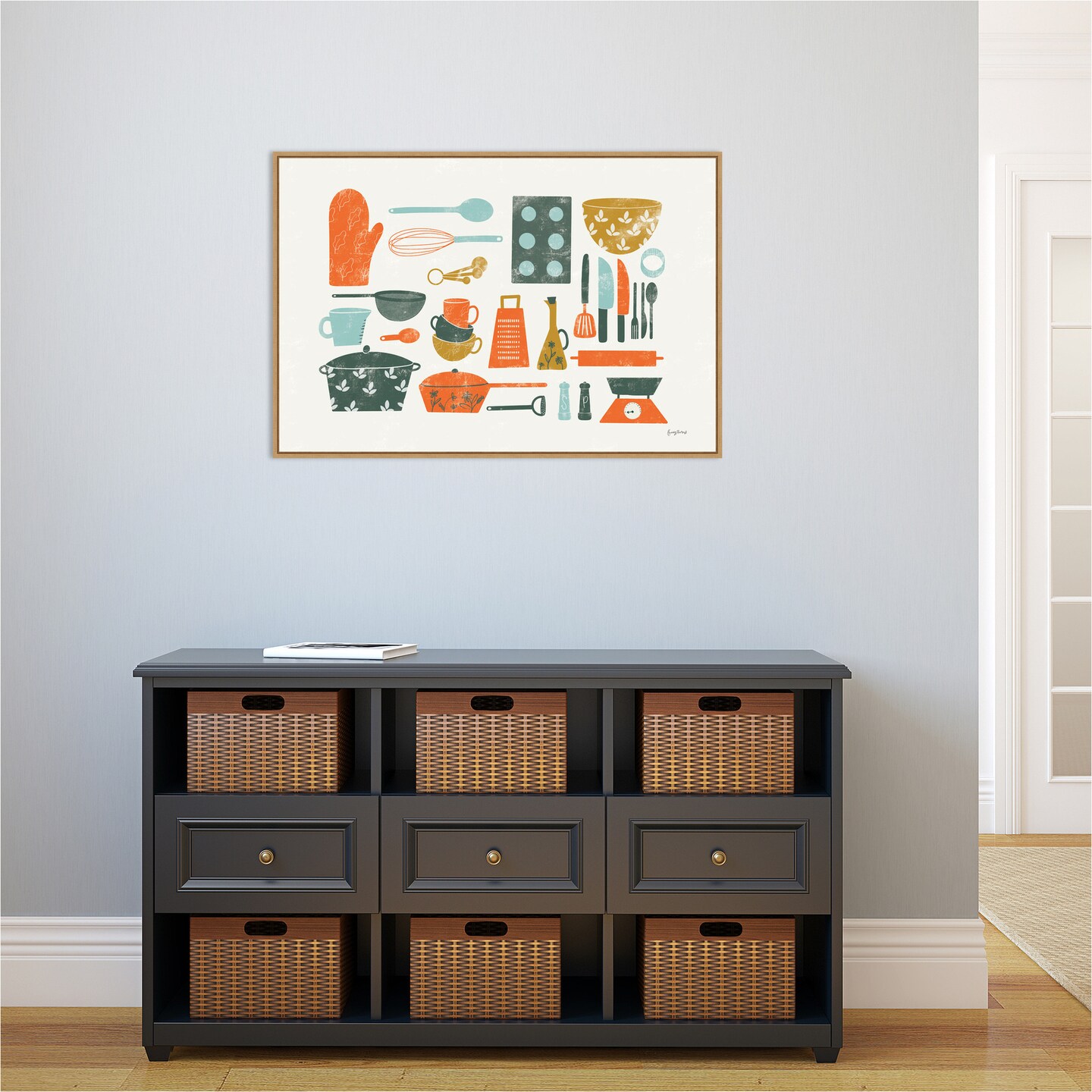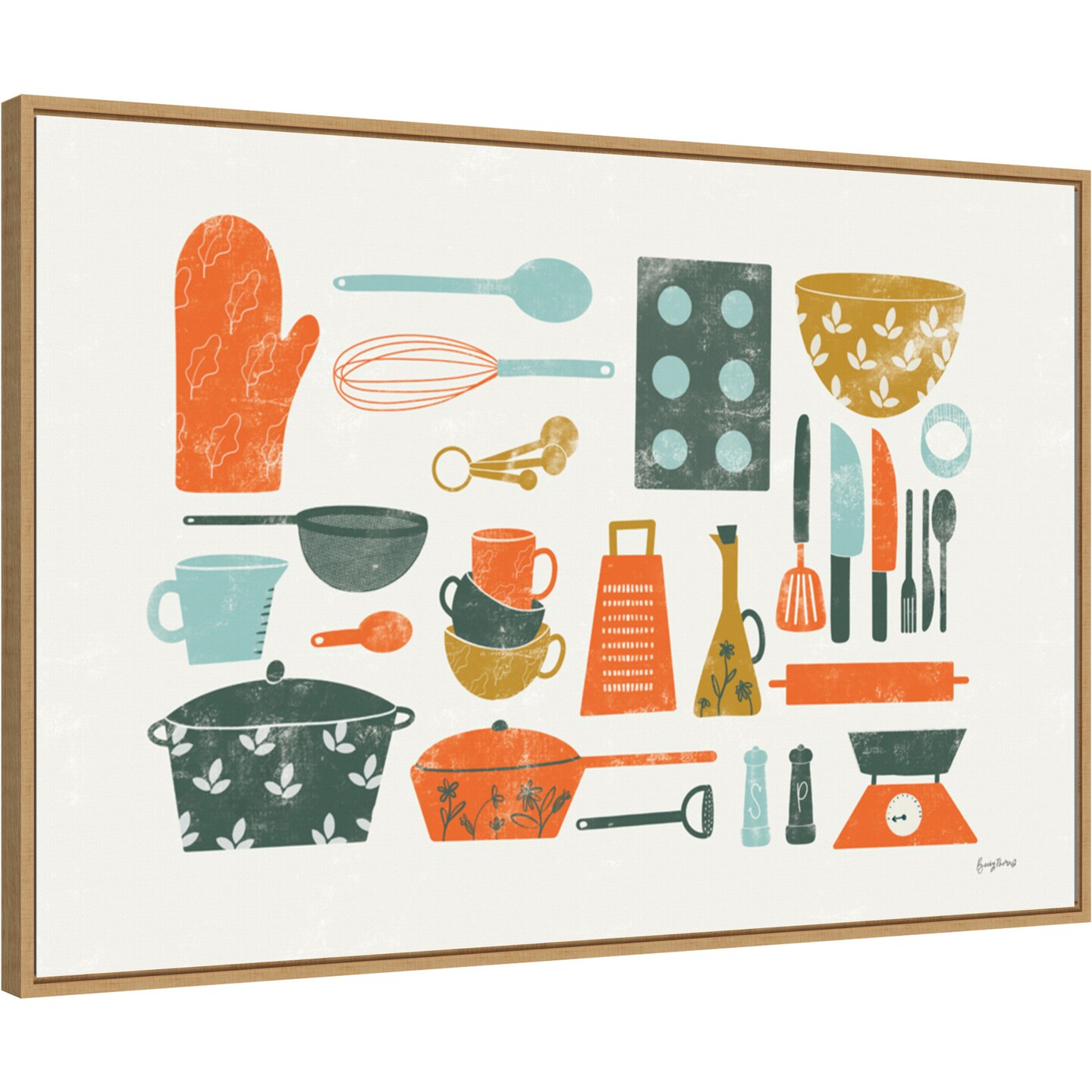 Retro Kitchen I by Becky Thorns 33-in. W x 23-in. H. Canvas Wall Art Print Framed in Natural