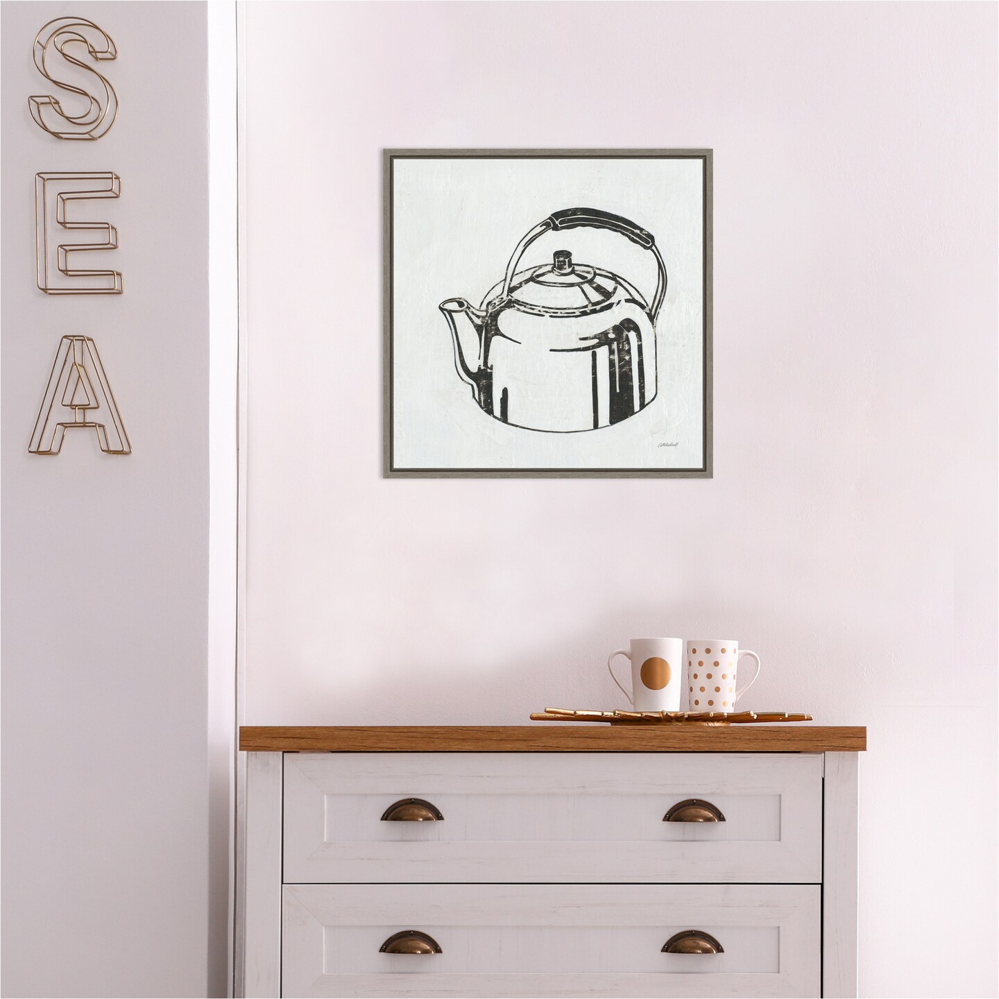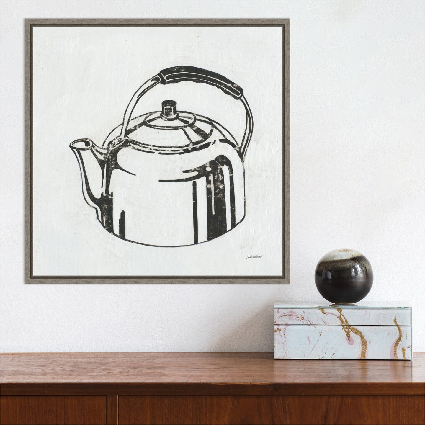 Retro Tea Kettle (Kitchen) by Kathrine Lovell Canvas Art Framed