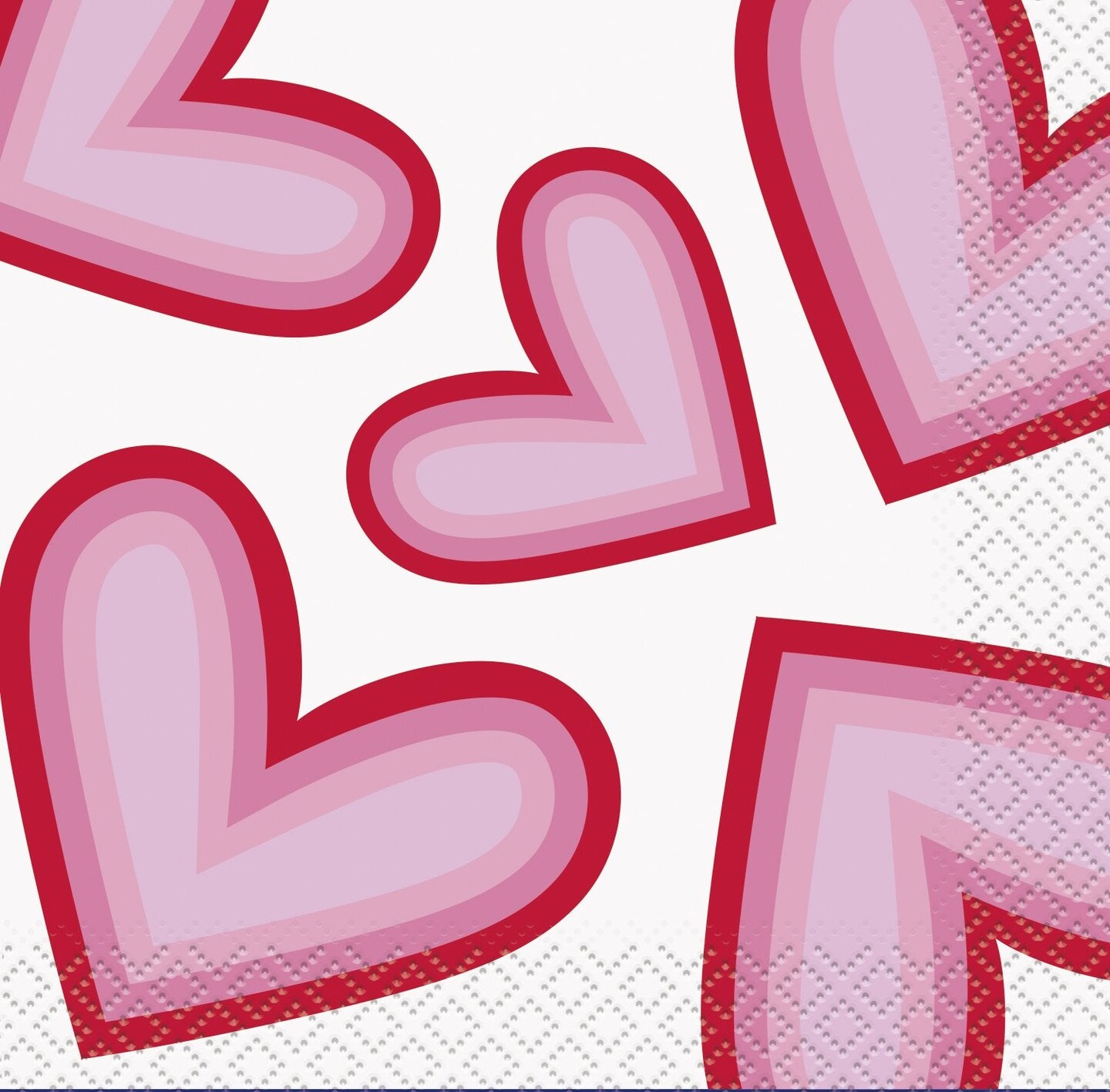 Retro Valentine Hearts Beverage Napkins - 16ct