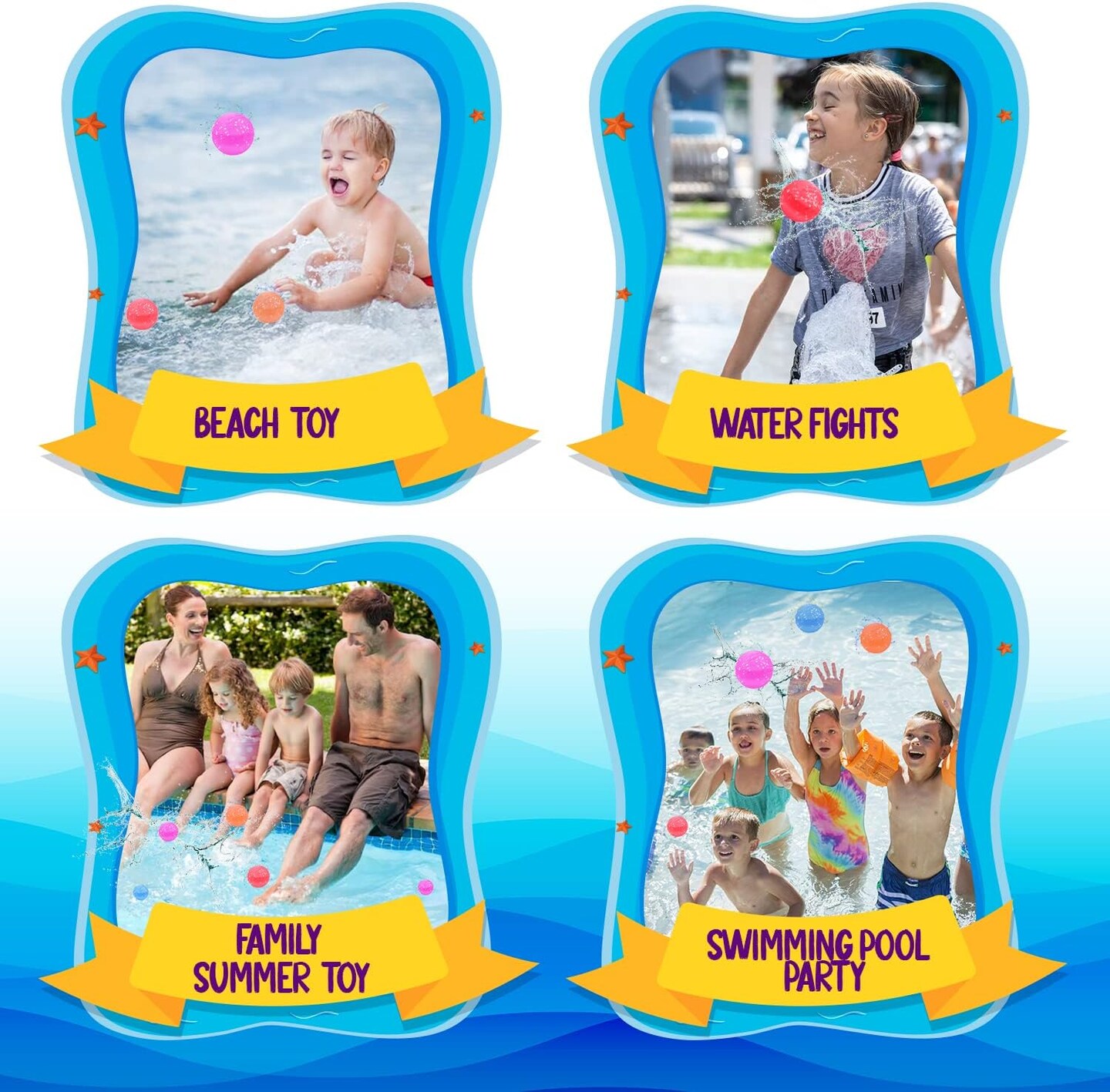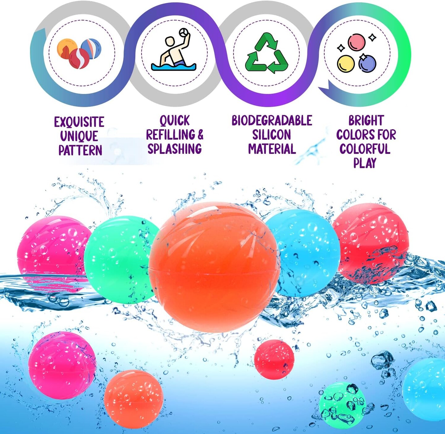 Reusable Water Balloons, Easy to Fill, Latex Free(Orange, Blue, Pink, Green, Red)