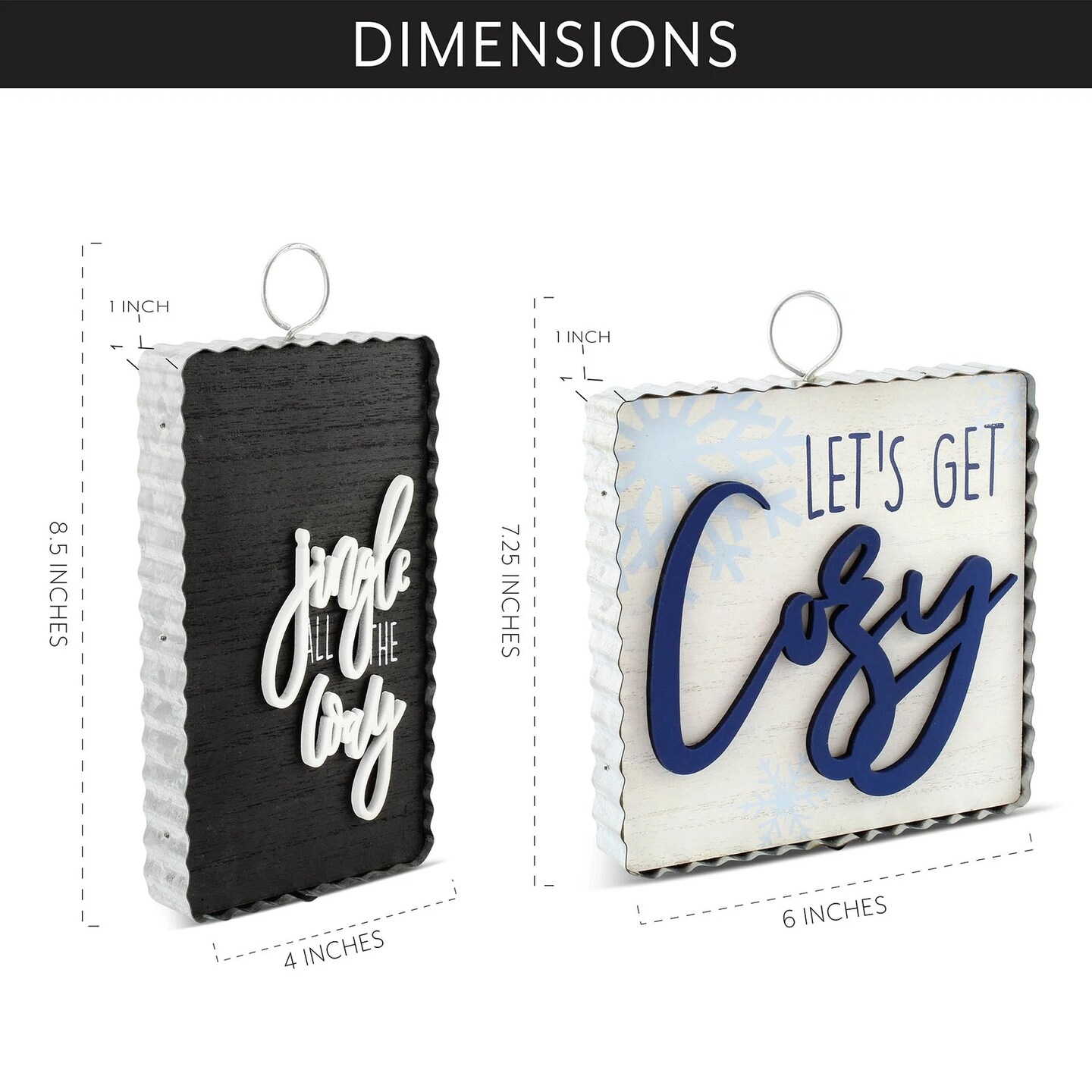Reversible Christmas Winter Signs 2ct Rustic Galvanized Frame Decor
