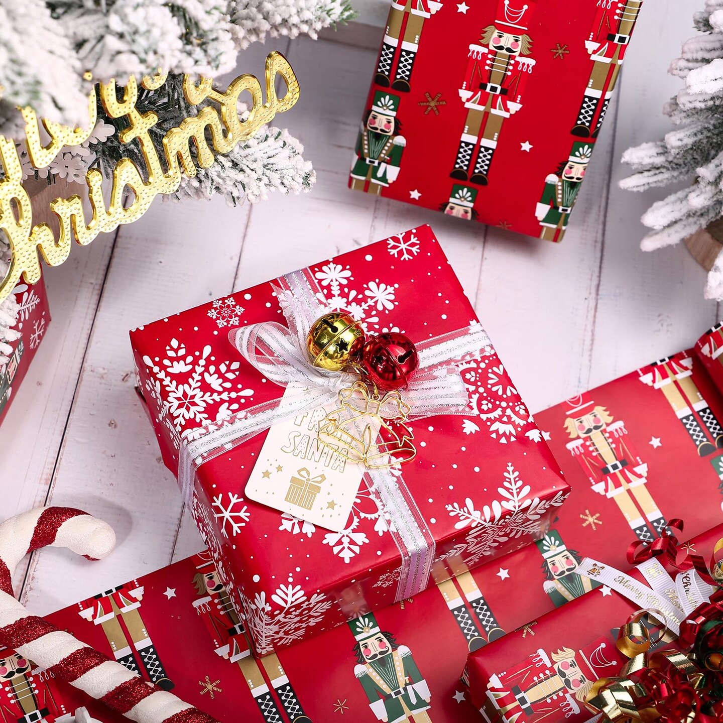 Reversible Nutcracker Christmas Wrapping Paper - Mini Roll - 17 Inch x 33 Feet - Red Nutcracker and Snowflake Wrapping Paper for Christmas, Holiday, Party