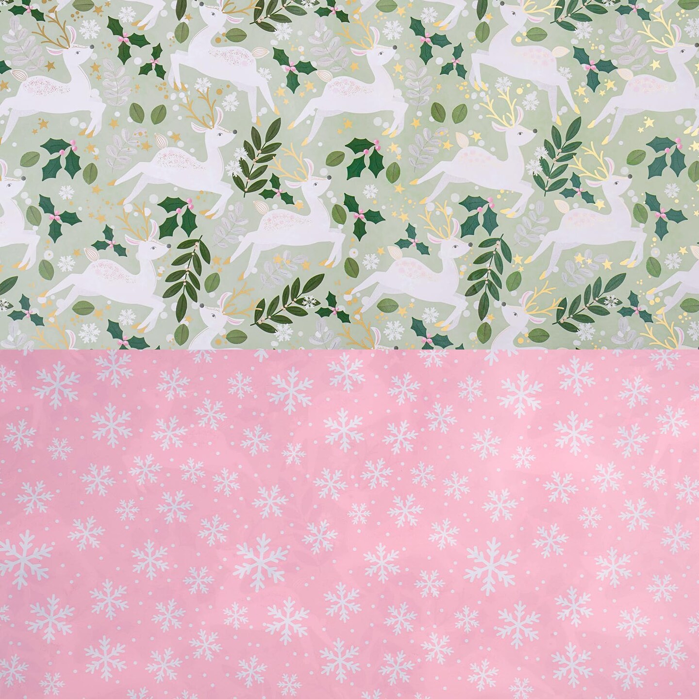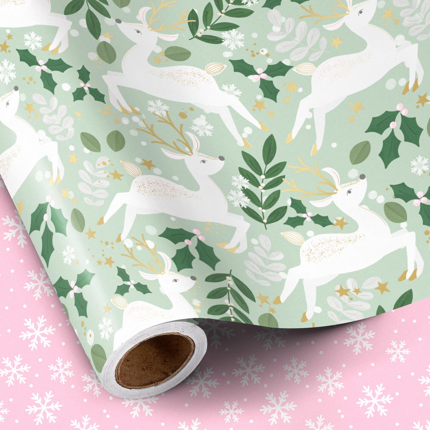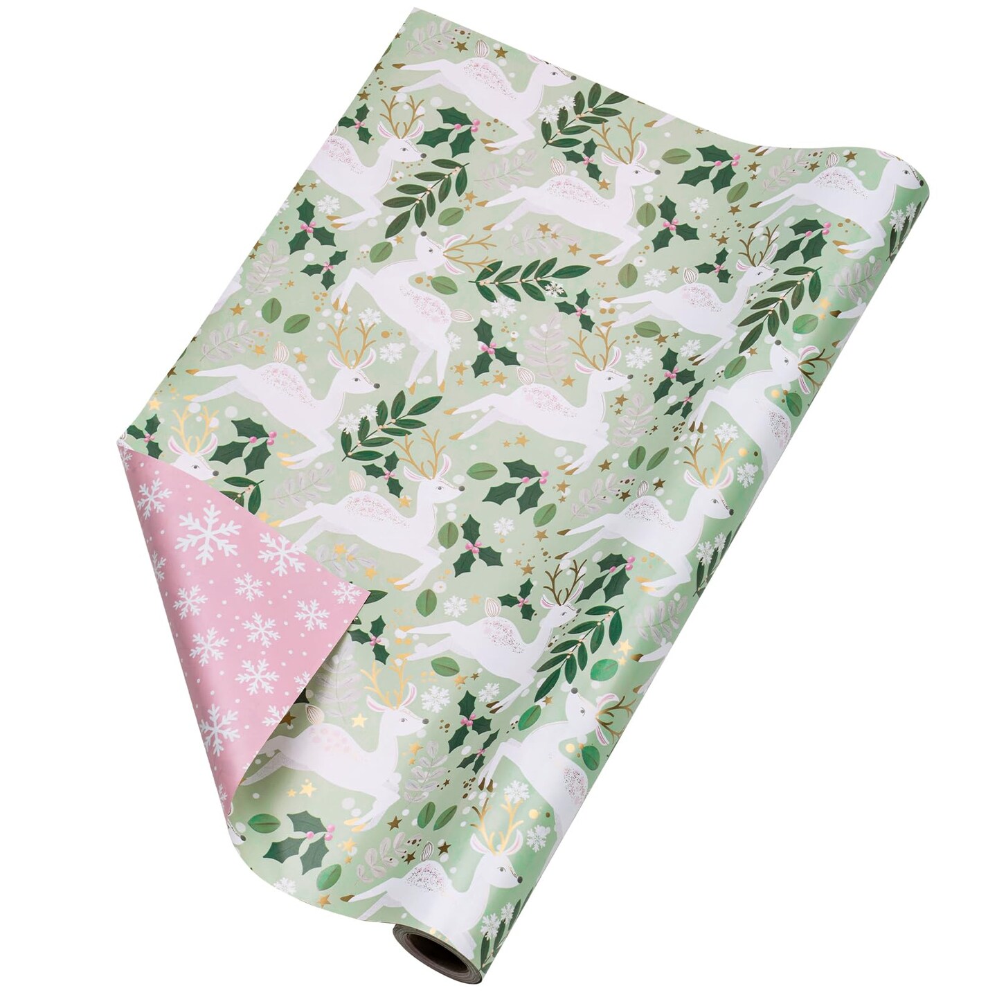 Reversible Wrapping Paper Roll - Mini Roll - Christmas White Reindeer and Snowflake Pattern Great for Christmas, Party, Holiday - 17.5 Inches X 32.8 Feet