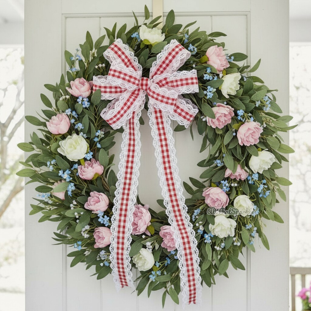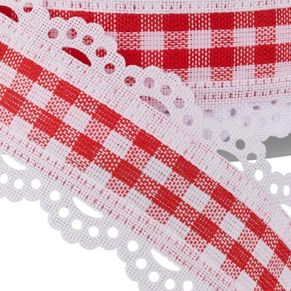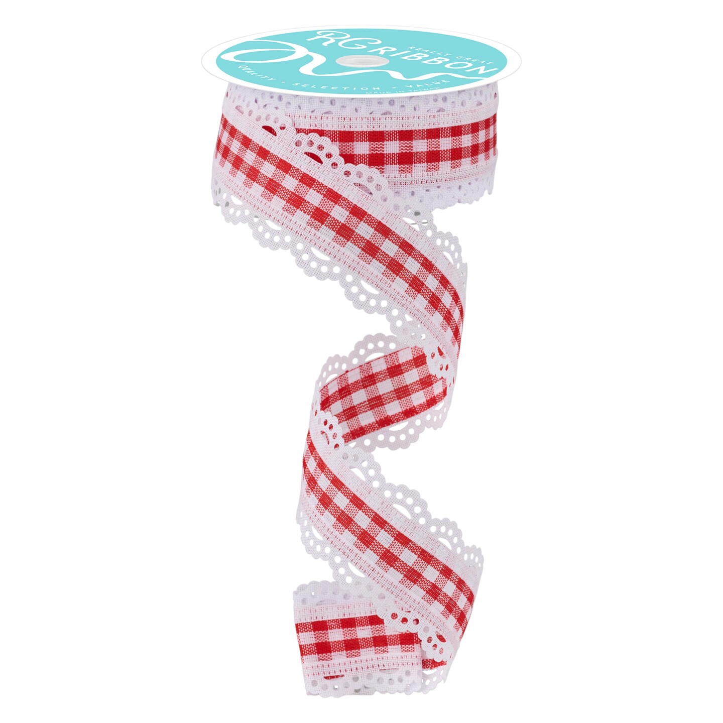 RG Ribbon: 1.5" Red and White Gingham Scalloped Lace Edge Ribbon for Bows, Wreaths, Crafts and Decorations