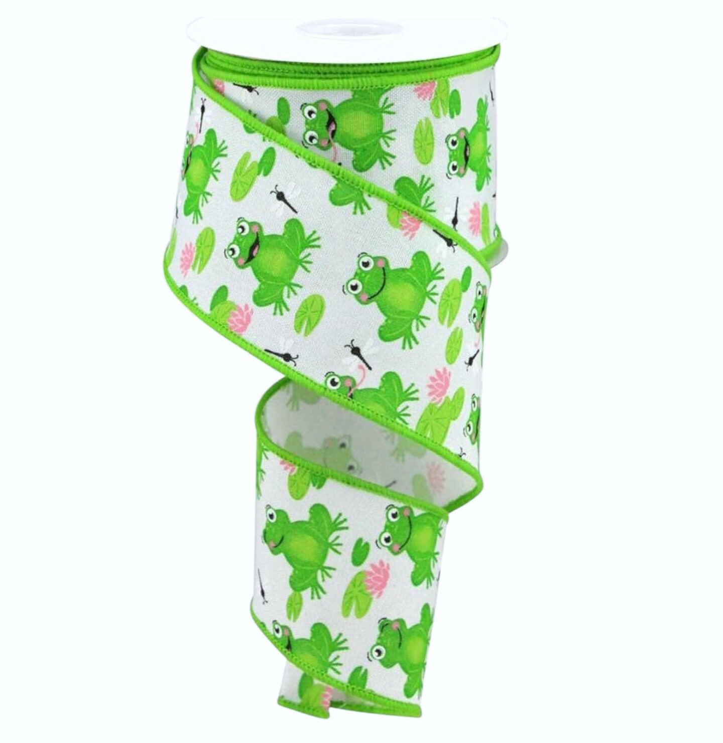 RG Ribbon: 1.5"-2.5" Frogs On Lily Pads Wired Ribbon - For Bows, Wreaths, Crafts, and Decorations - Classroom / Back to School Bulletin Boards