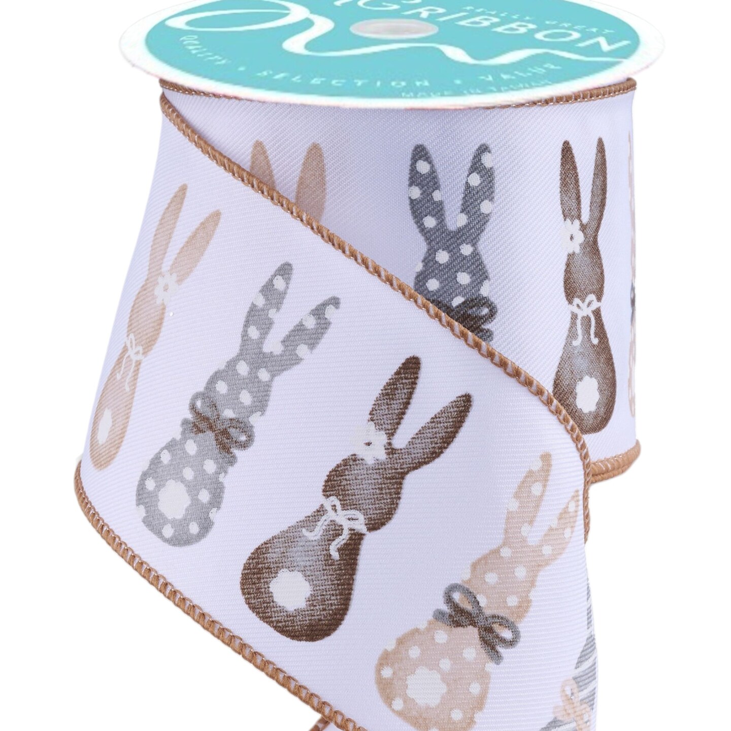 RG Ribbon: 2.5" Easter Bunny Silhouettes Wired Ribbon - White, Tan, Gray For Spring, Baby Shower Baskets, Bows, Wreaths,Crafts and Decorations