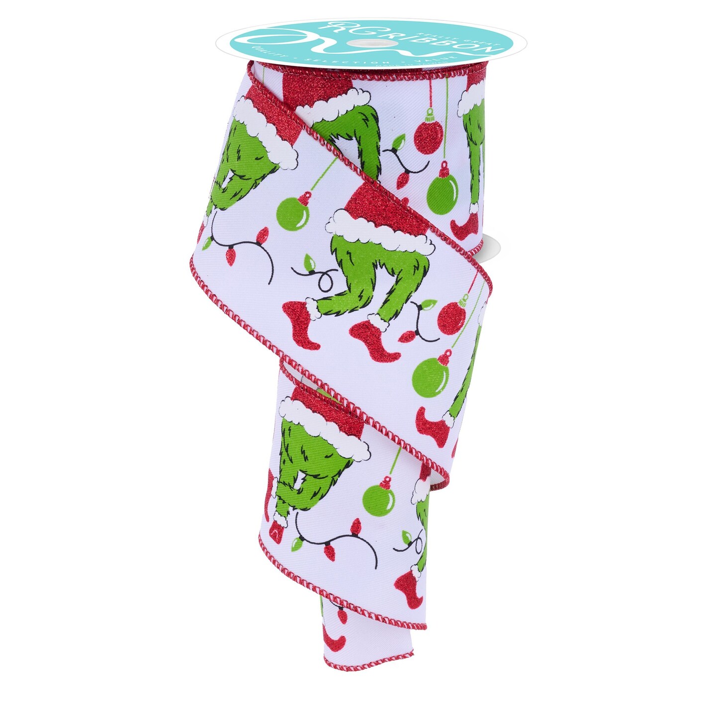 RG Ribbon: 2.5" Furry Elf Legs Wired Ribbon - White, Lime Green, Red