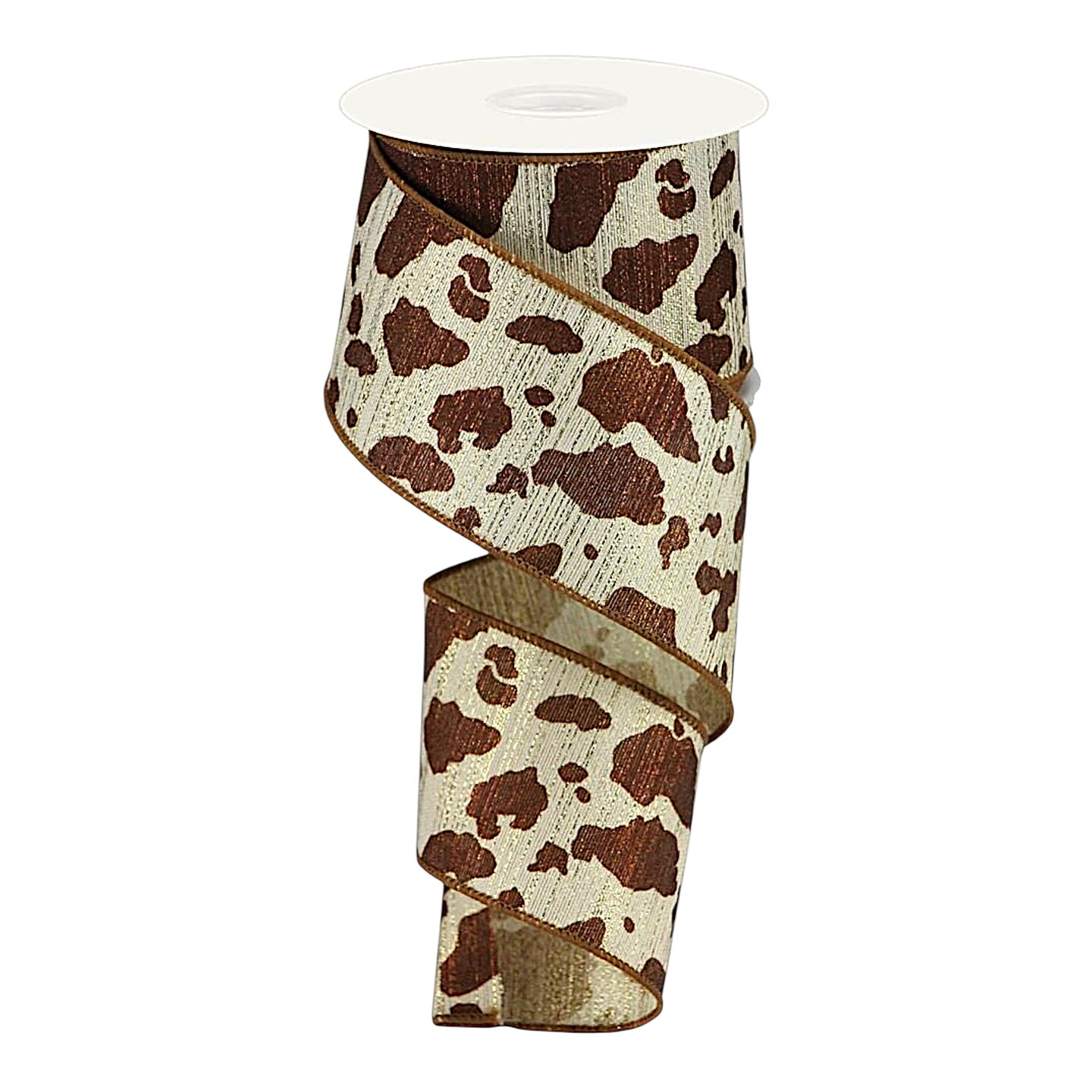 RG Ribbon: 2.5" Metallic Gold Cow Print Ribbon for Bows, Wreaths, Crafts, and Decorations - Rustic, Farmhouse