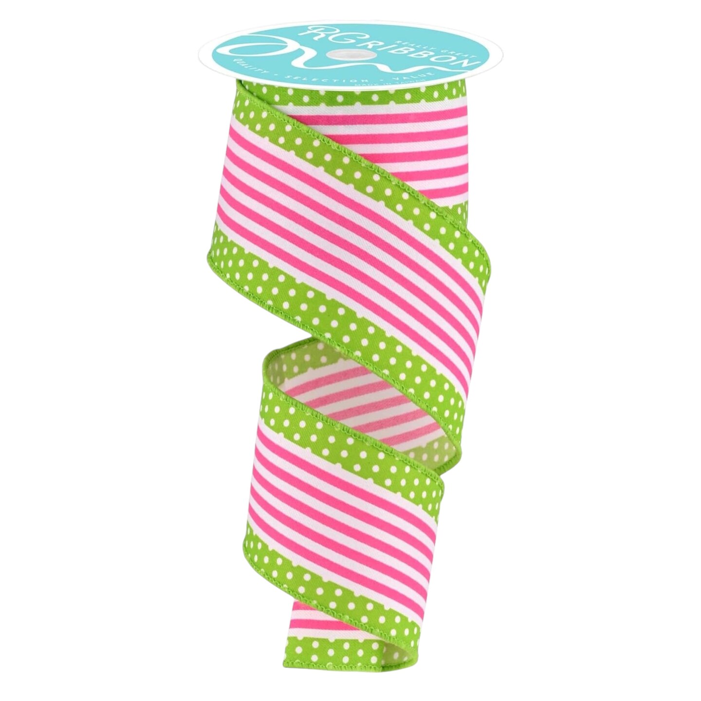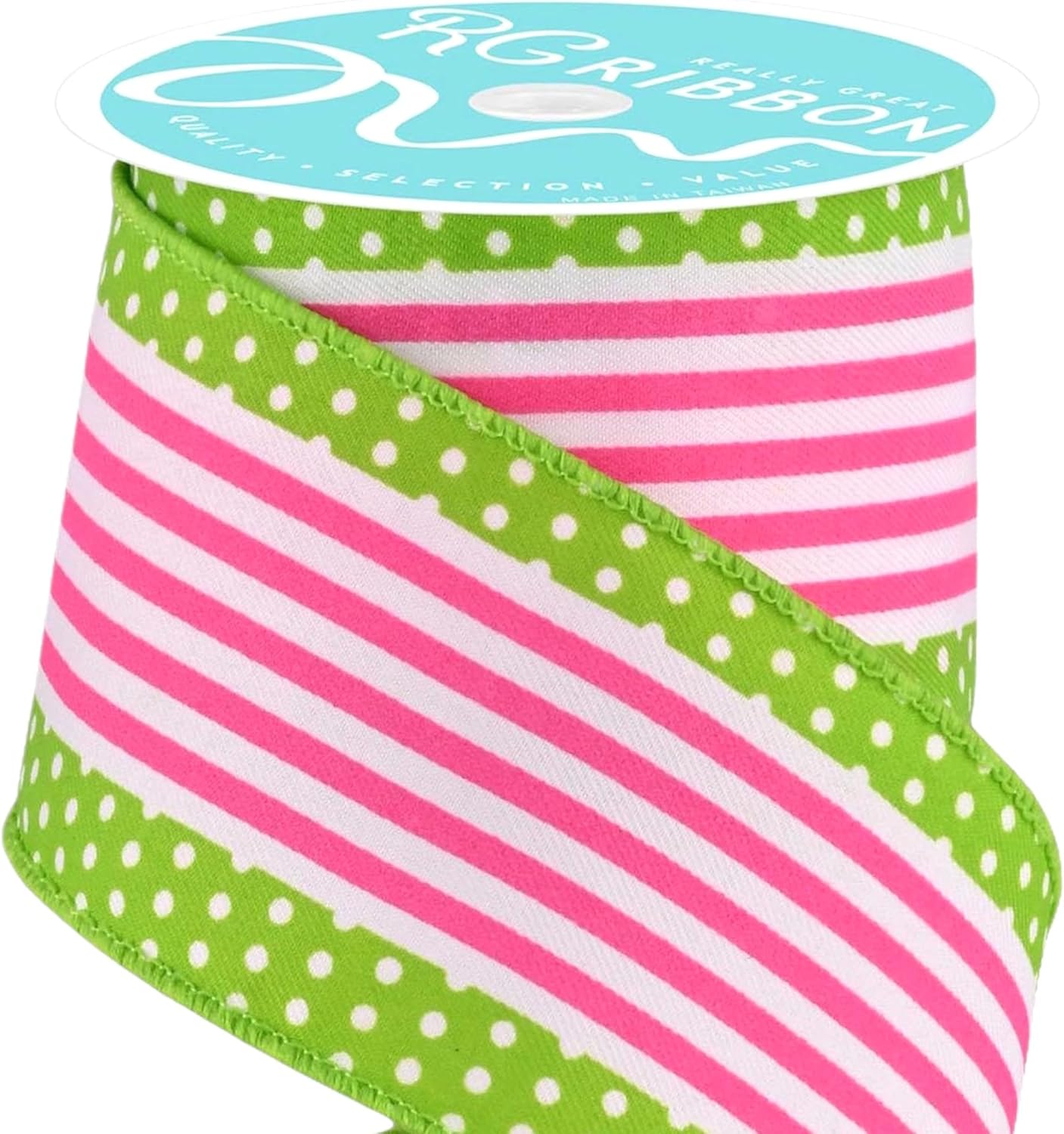 RG Ribbon: 2.5" Stripes and Polka Dots, Wired Edge Ribbon For Bows, Wreaths, Crafts, and Decorations
