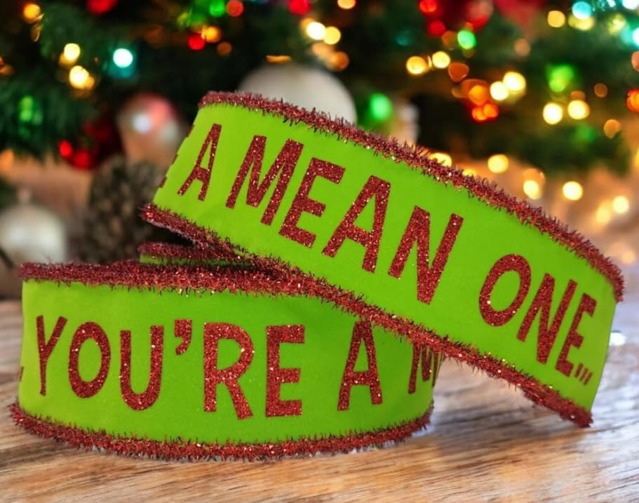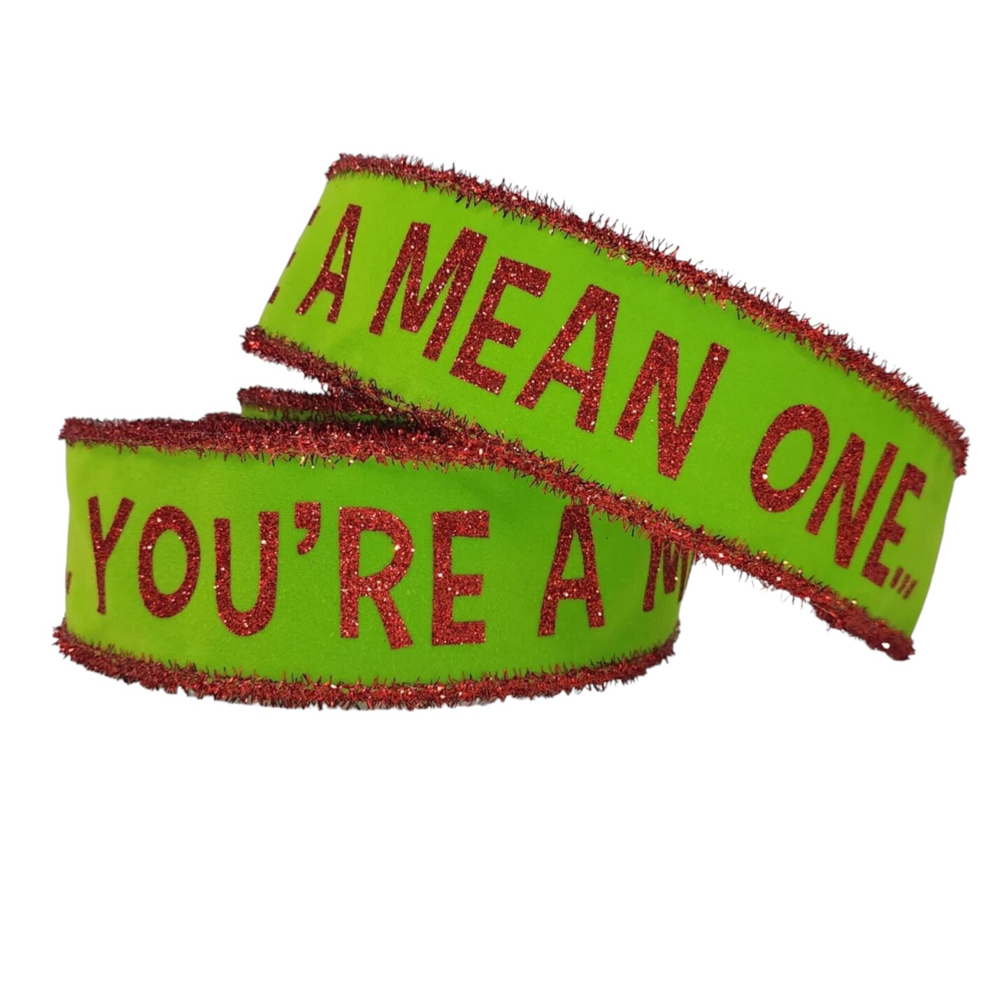 RG Ribbon: 2.5" Velvet You're a Mean One Wired Ribbon 10 Yards - Lime Green, Red - For Christmas Bows, Wreaths, Crafts, Tree Toppers, and Decorations