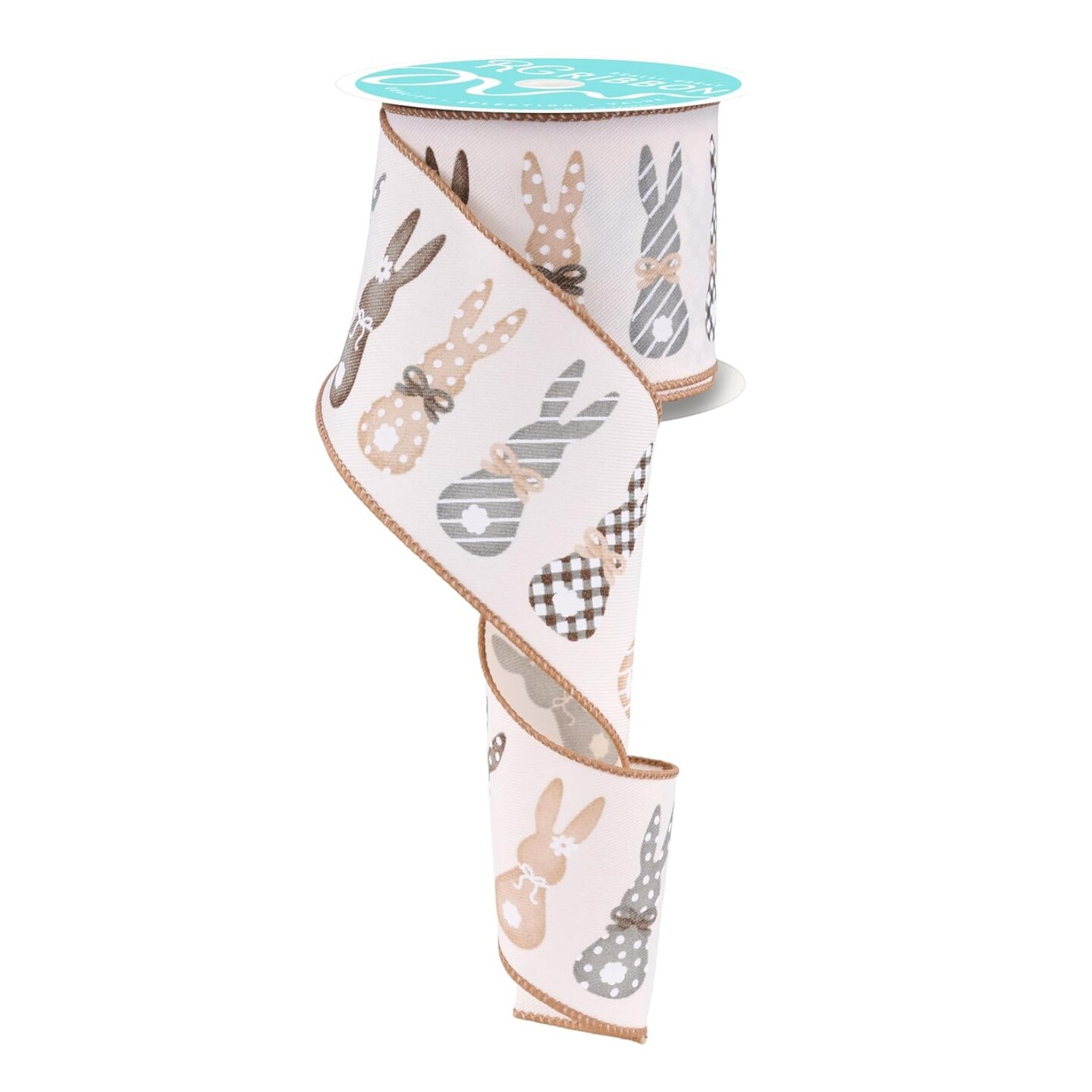 RG Ribbon: Easter Bunny 2.5" Silhouettes Wired Ribbon for Spring and Baby Shower Baskets, Bows, Wreaths, Crafts and Decorations (Ivory, Brown, Grey)