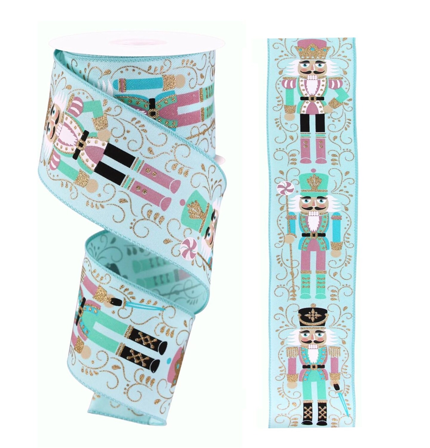 RG Ribbon: Pastel Nutcracker Wired Ribbon, 2.5" x 10 Yards For Christmas Bows, Wreaths, Gift Wrapping, Crafts, and Decorations