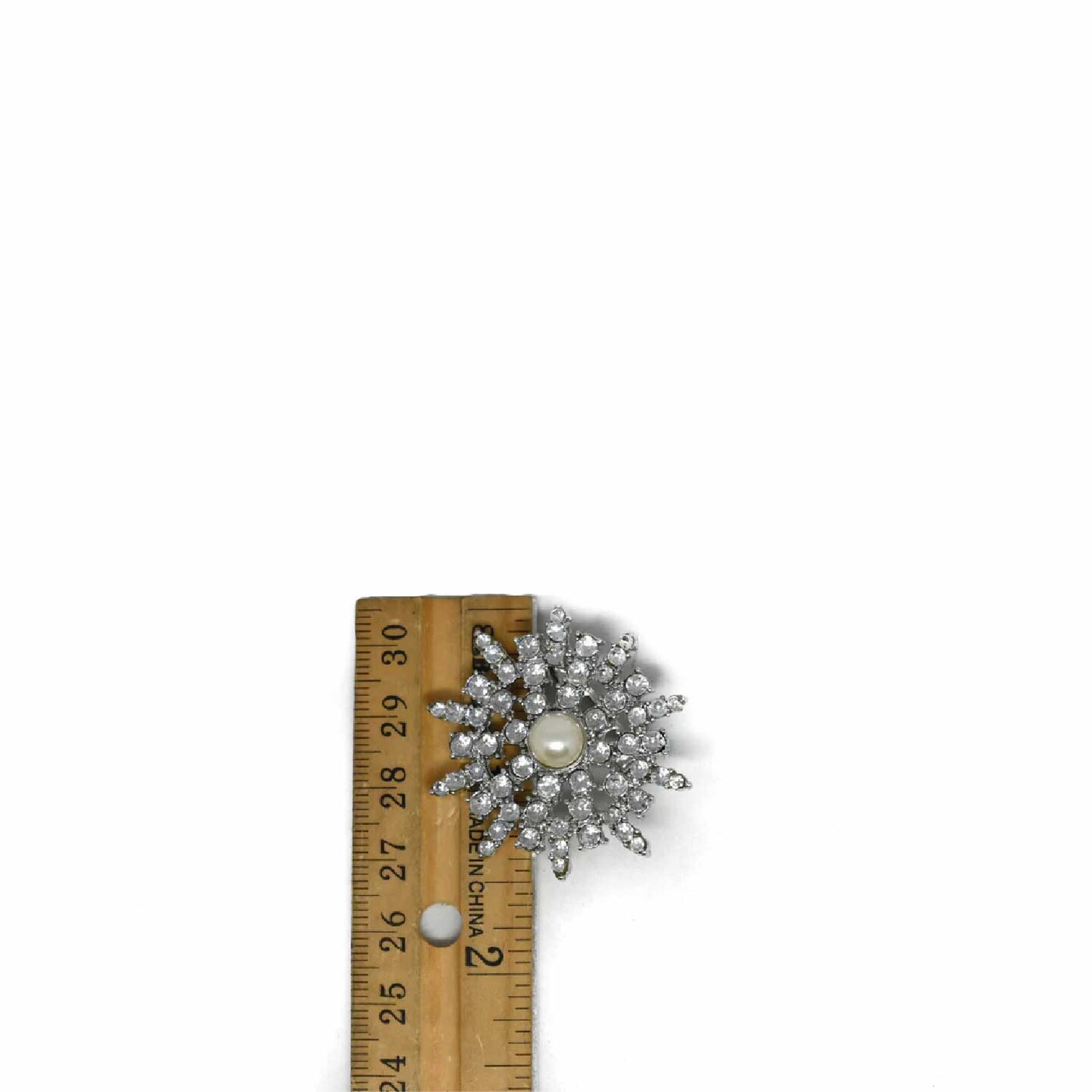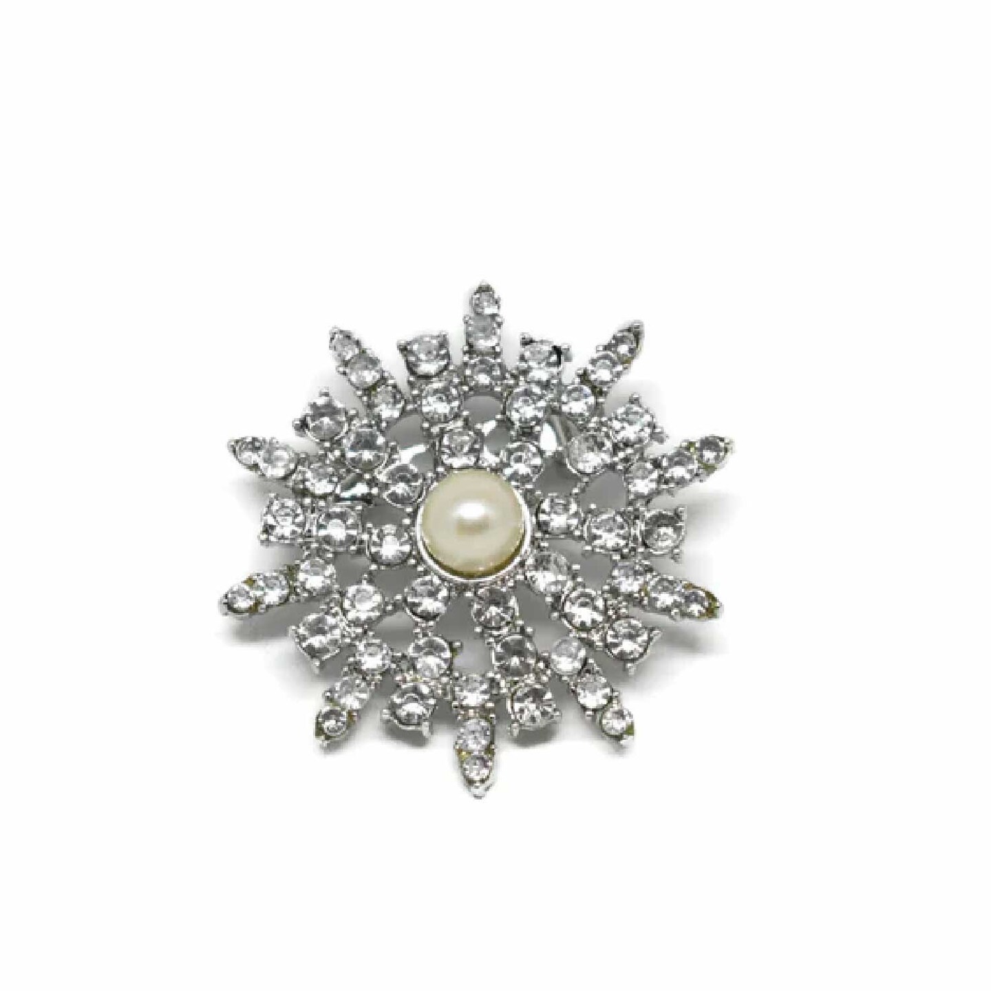 Rhinestone Brooch With Pearl Pin For Dresses Bridal Crafts 1 1/2 Inch