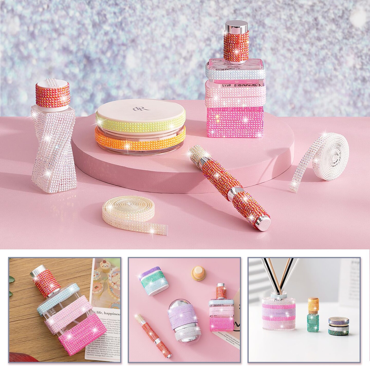 Rhinestone Ribbon Self Adhesive Crystal Rhinestones, 12-Rolls Bedazzling Strips, 12-Yard Rhinestone Strips for DIY Craft, Rhinestones for Crafting