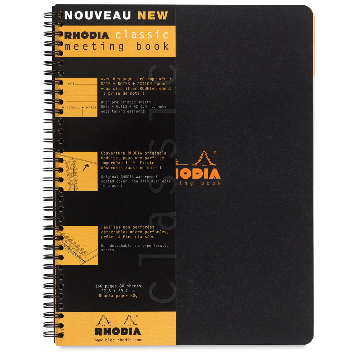 Rhodia Wirebound Meeting Notebook - Black, Lined, 11-3/4" x 9"