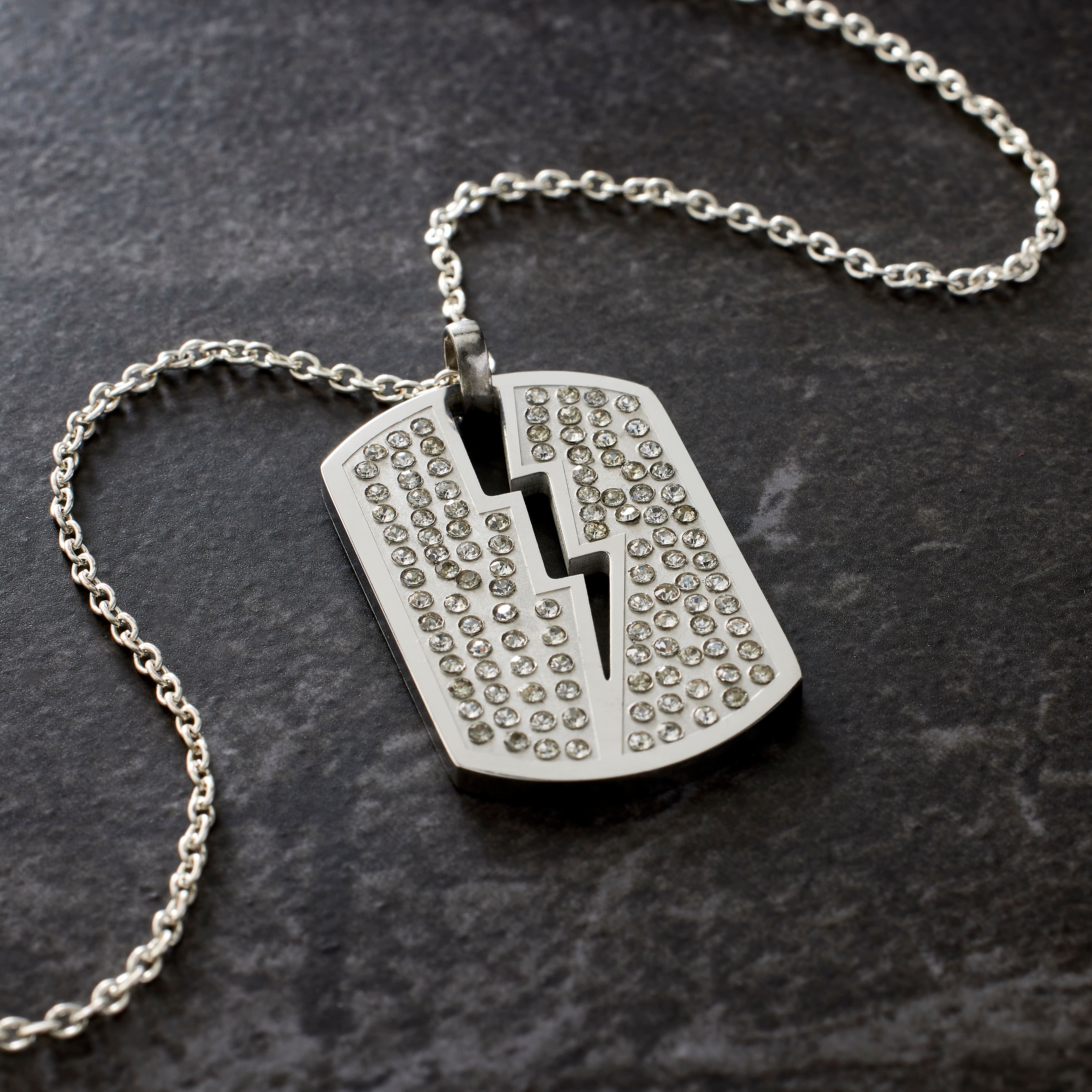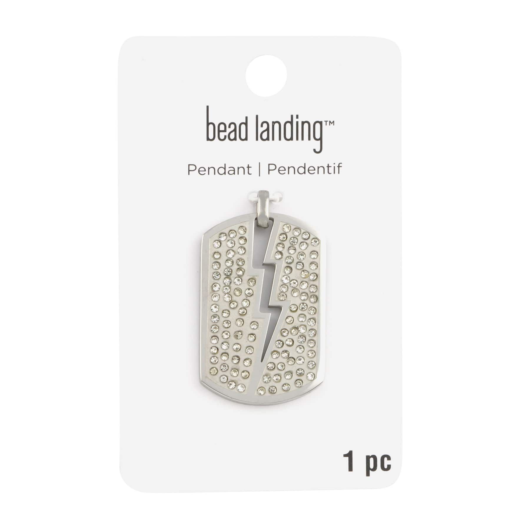 Rhodium Crystal Lightning Bolt Dog Tag Pendant by Bead Landing™
