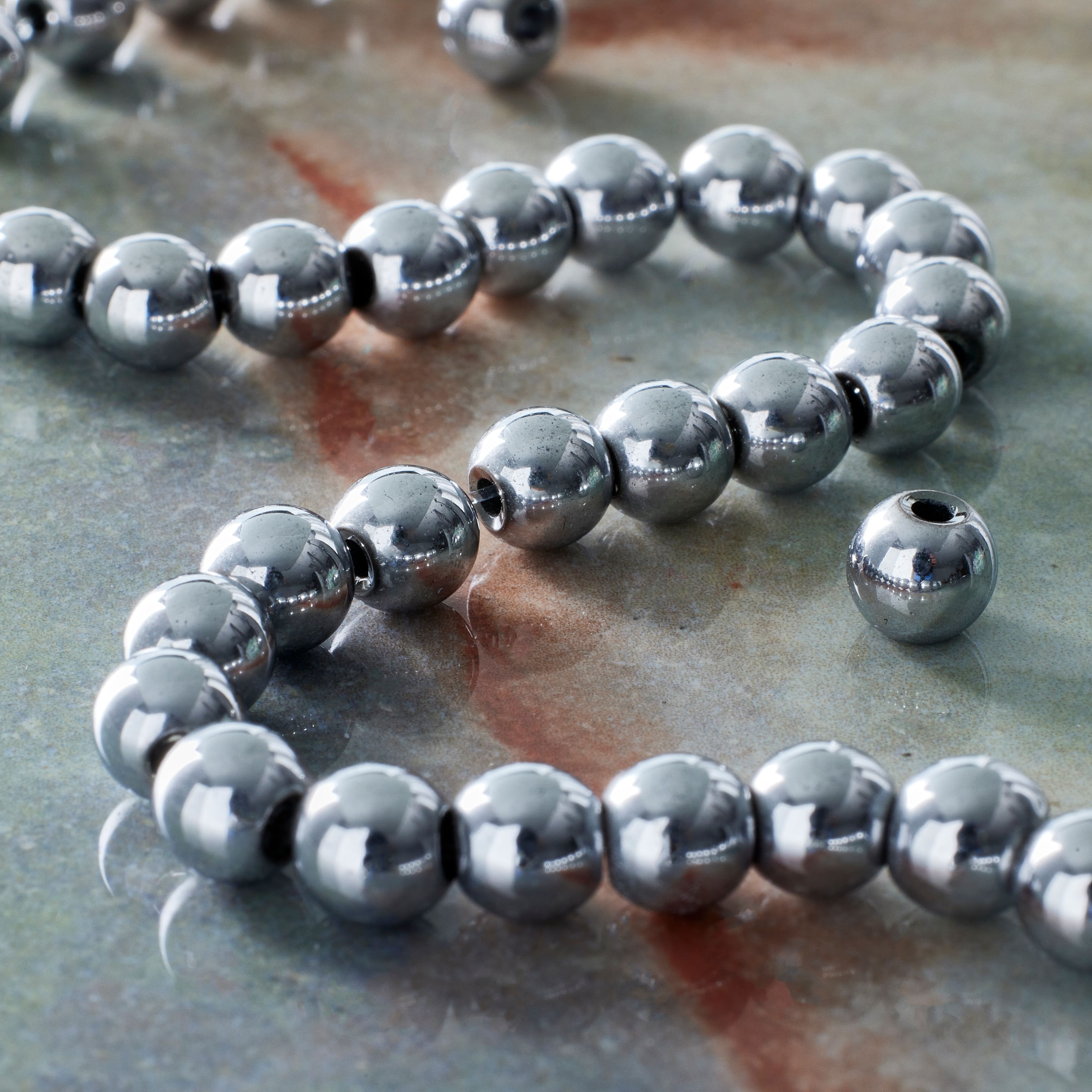 Rhodium Reconstituted Hematite Round Beads by Bead Landing™