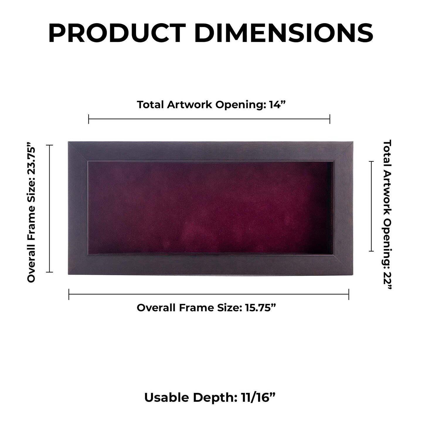 Rich Dark Brown Wood Shadow Box Frame with Acrylic Front - Dark Red Suede Backing, 30 Sizes