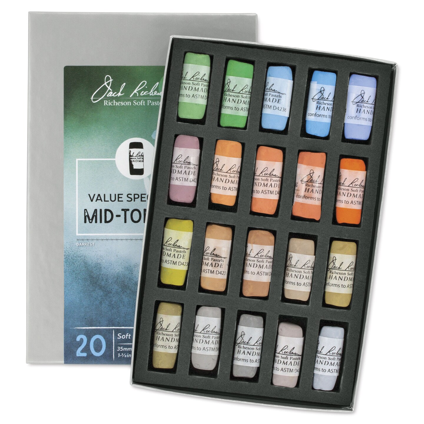 Richeson Soft Handrolled Pastels - Mid Tones 5, Set of 20