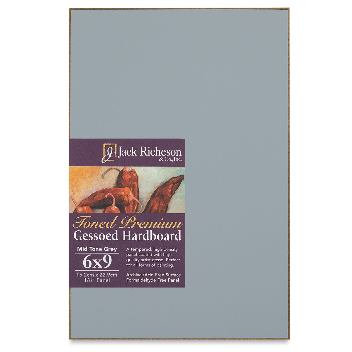 Richeson Toned Gesso Hardboard Panel - 6" x 9", Mid-Tone Grey