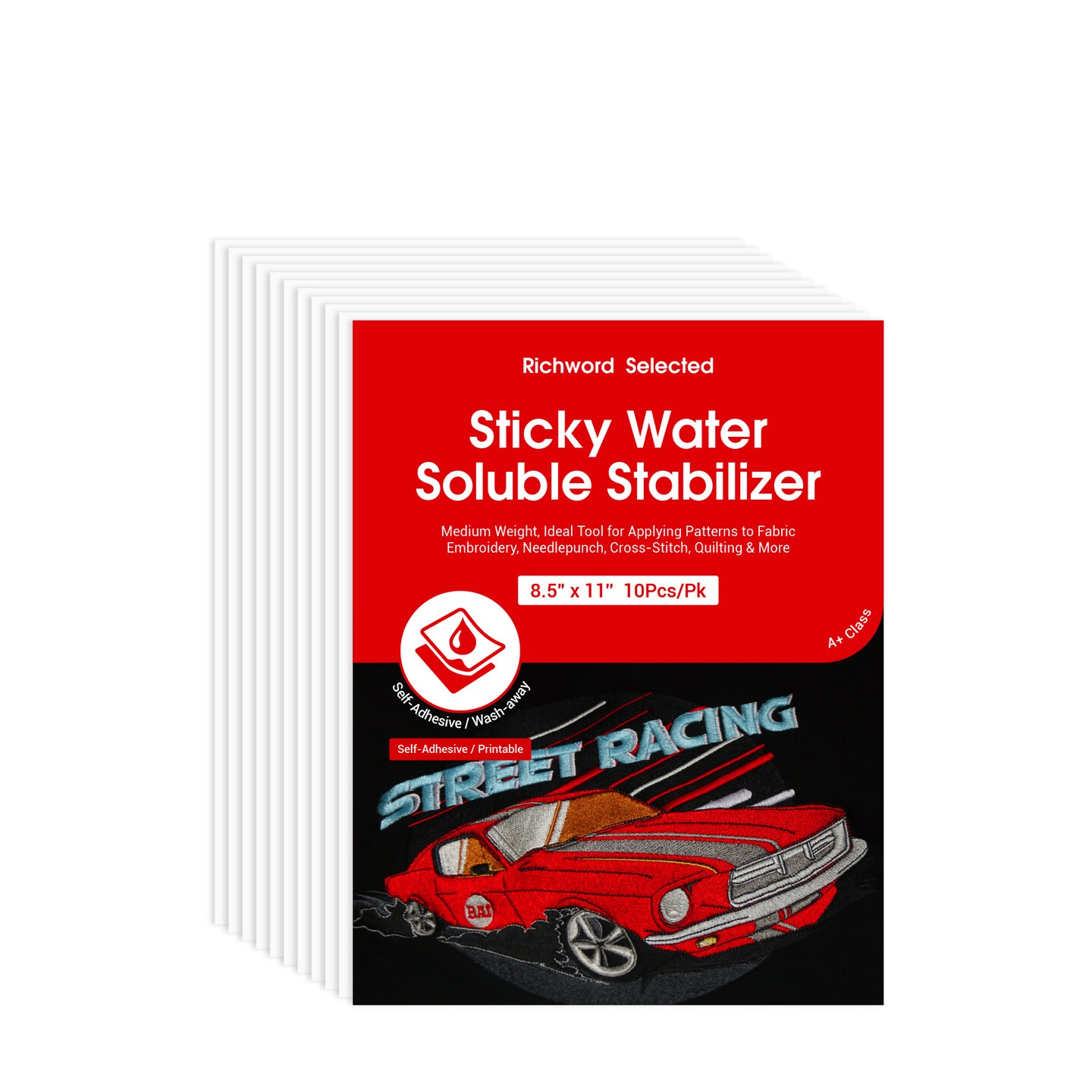 Richword Selected Printable Sticky Water-Soluble Embroidery Stabilizer, Wash Away Self-Adhesive Topper for Hand & Home Machine Embroidery, 8.5 x 11 in Sheets (10, 15 & 30 Pack) and 12 in x 10 yd Roll