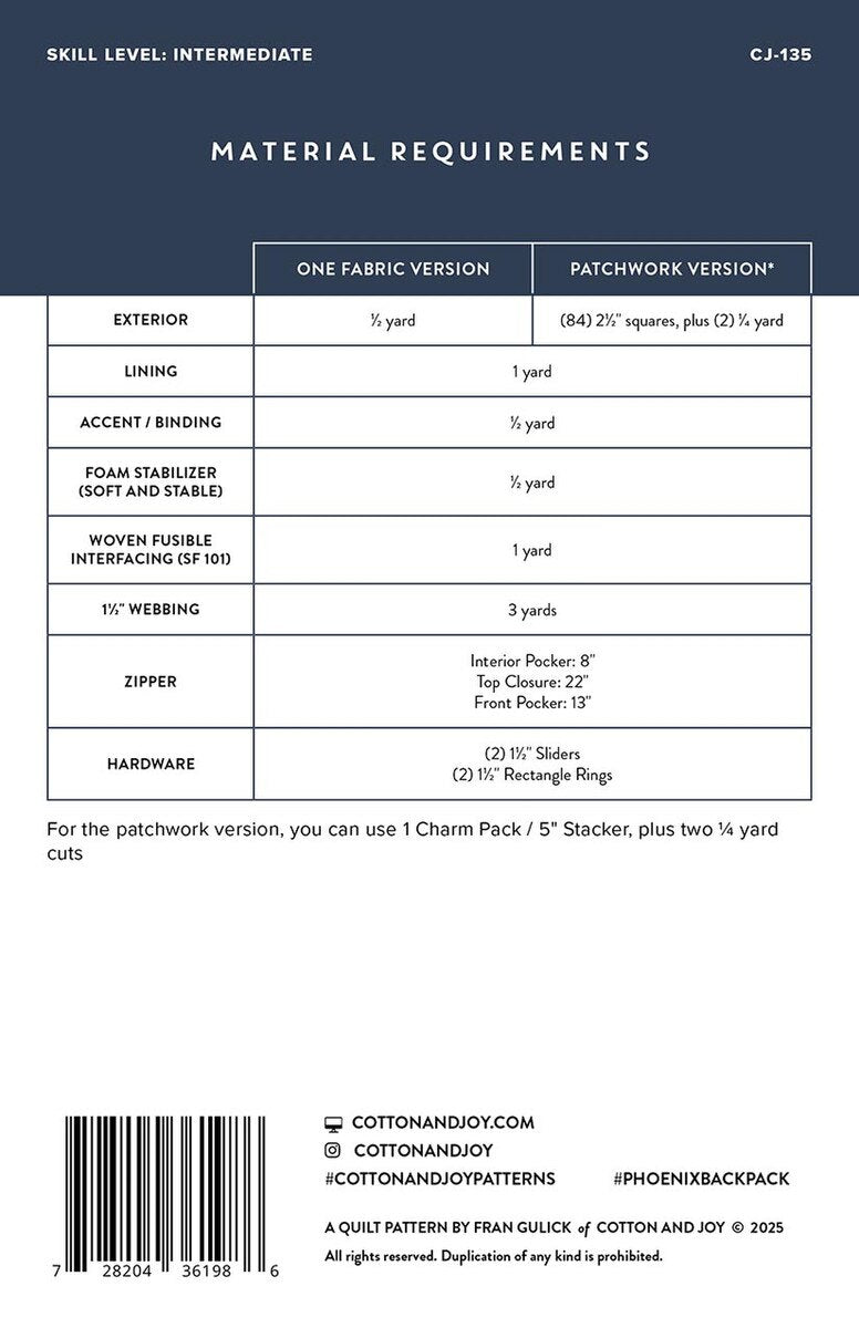 Riley Blake Designs Fran Gulick Phoenix Backpack Pattern P173-PHOENIX