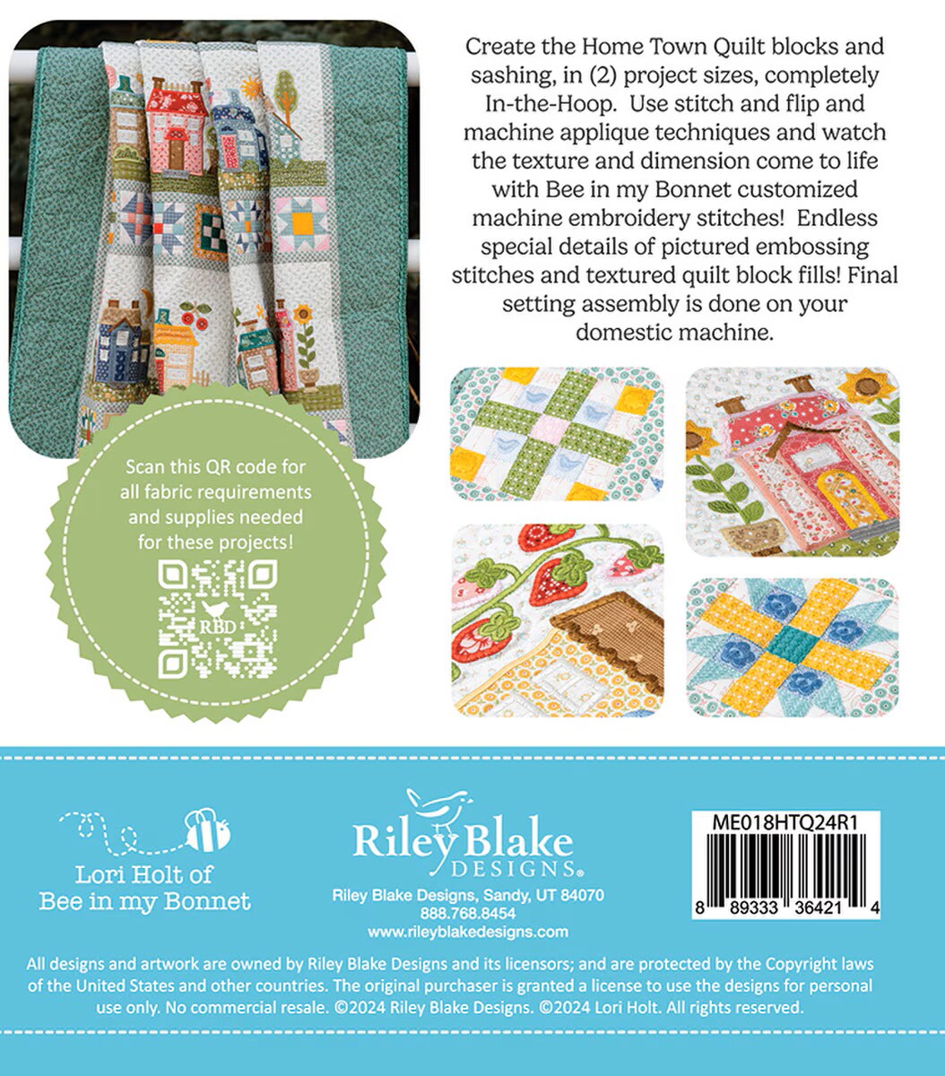 Riley Blake Designs Lori Holt Home Town Machine Embroidery Quilt Projects USB ME018HTQ24R1