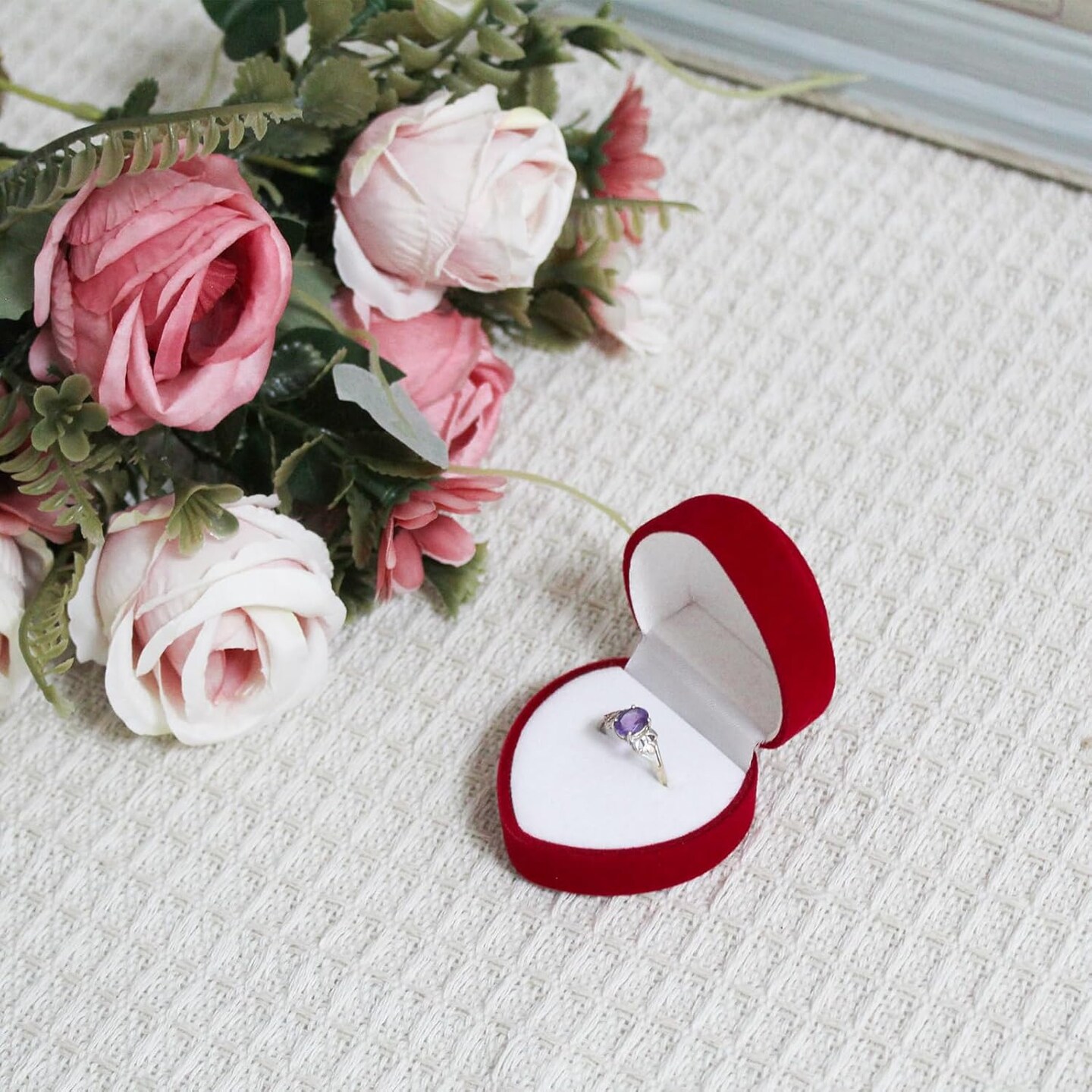 Ring Box, Velvet Ring Storage Box Exquisite Ring Jewelry Box with Heart Shaped, Single-seat Ring Gift Box for Proposals, Engagements, Weddings (red)