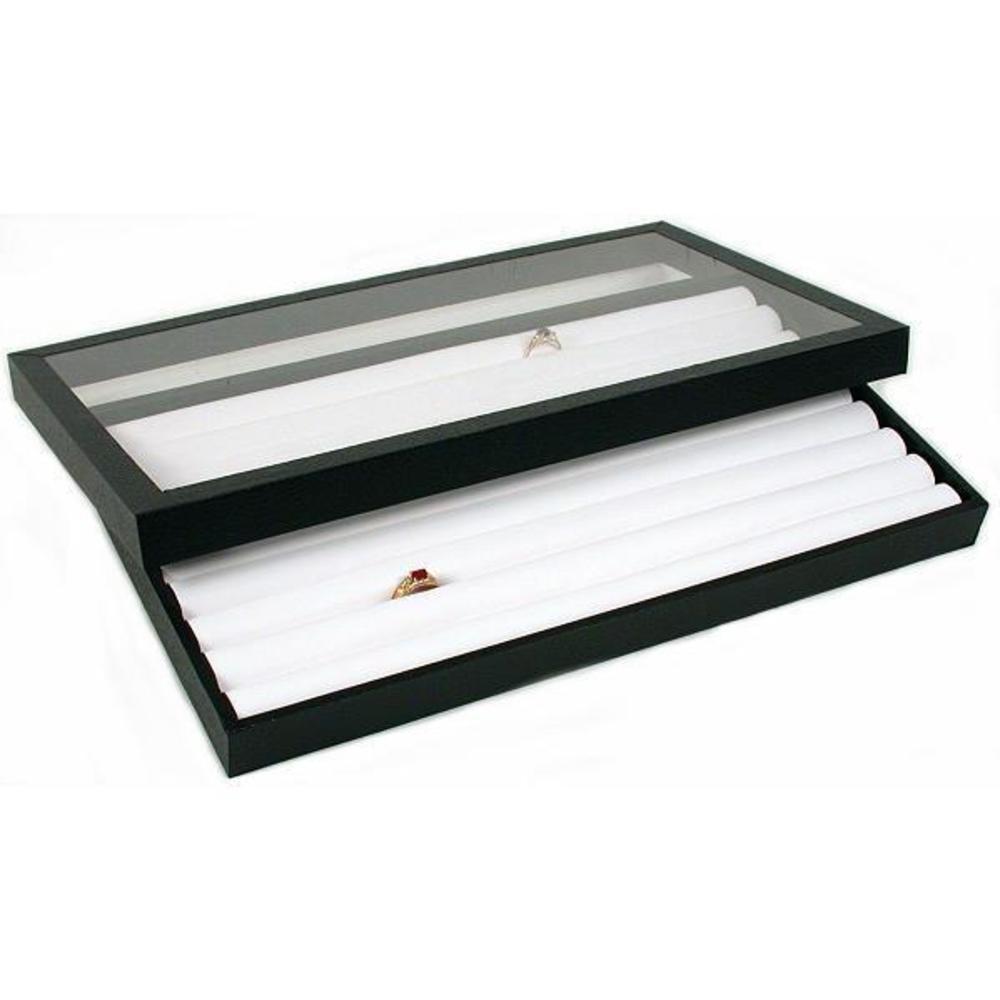 Ring Display White Leather Jewelry Tray Clear Lid Case