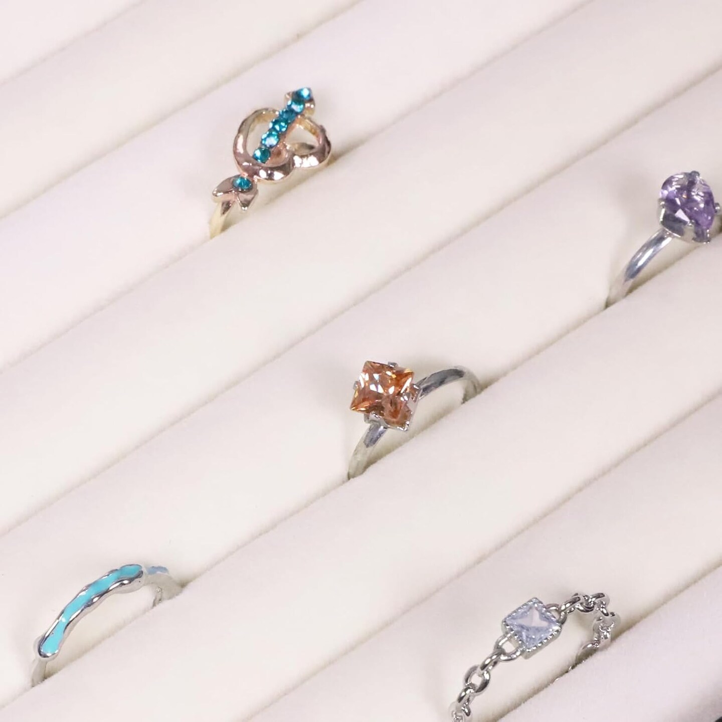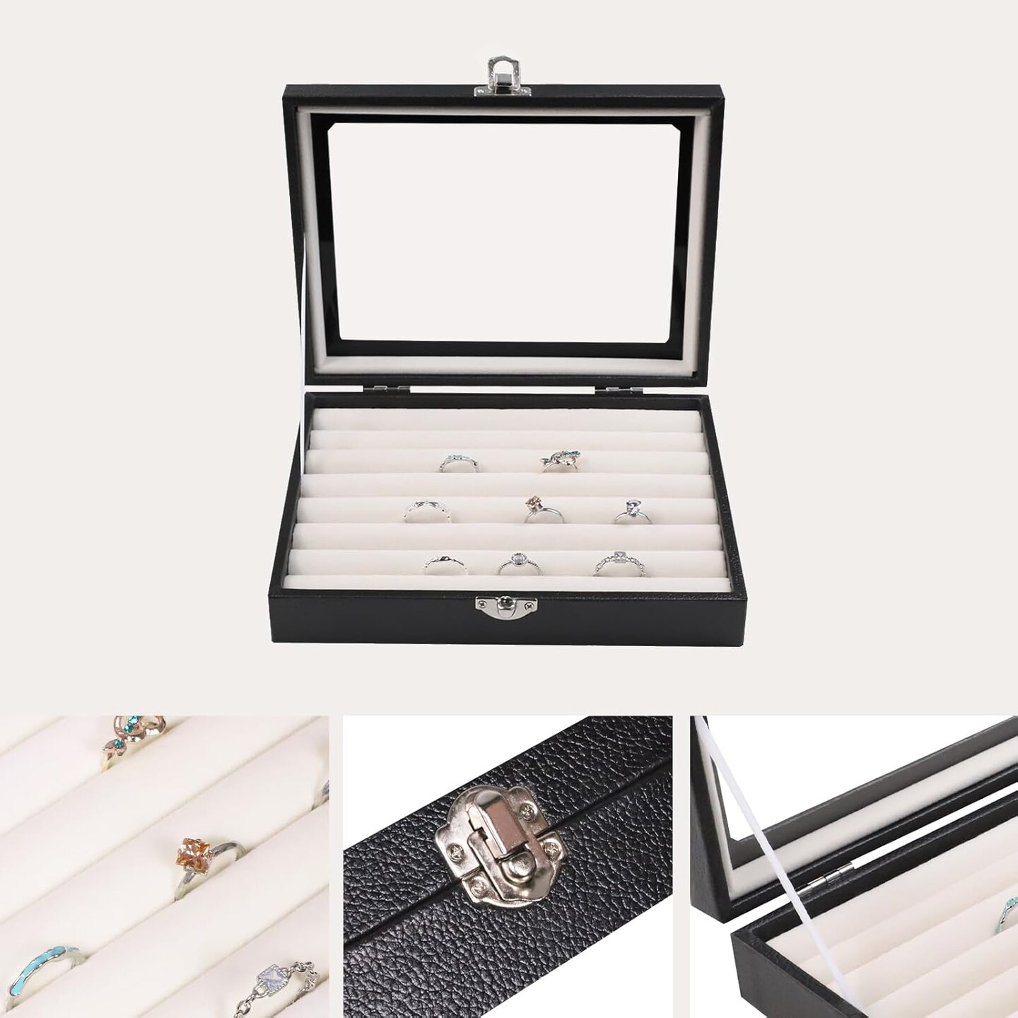 Ring Holder Small Jewelry Storage Box Ring Display Case Cute Ring Box Ring Organizer With Clear Lid Jewelry Box for Women Girls Christmas Gift Beige