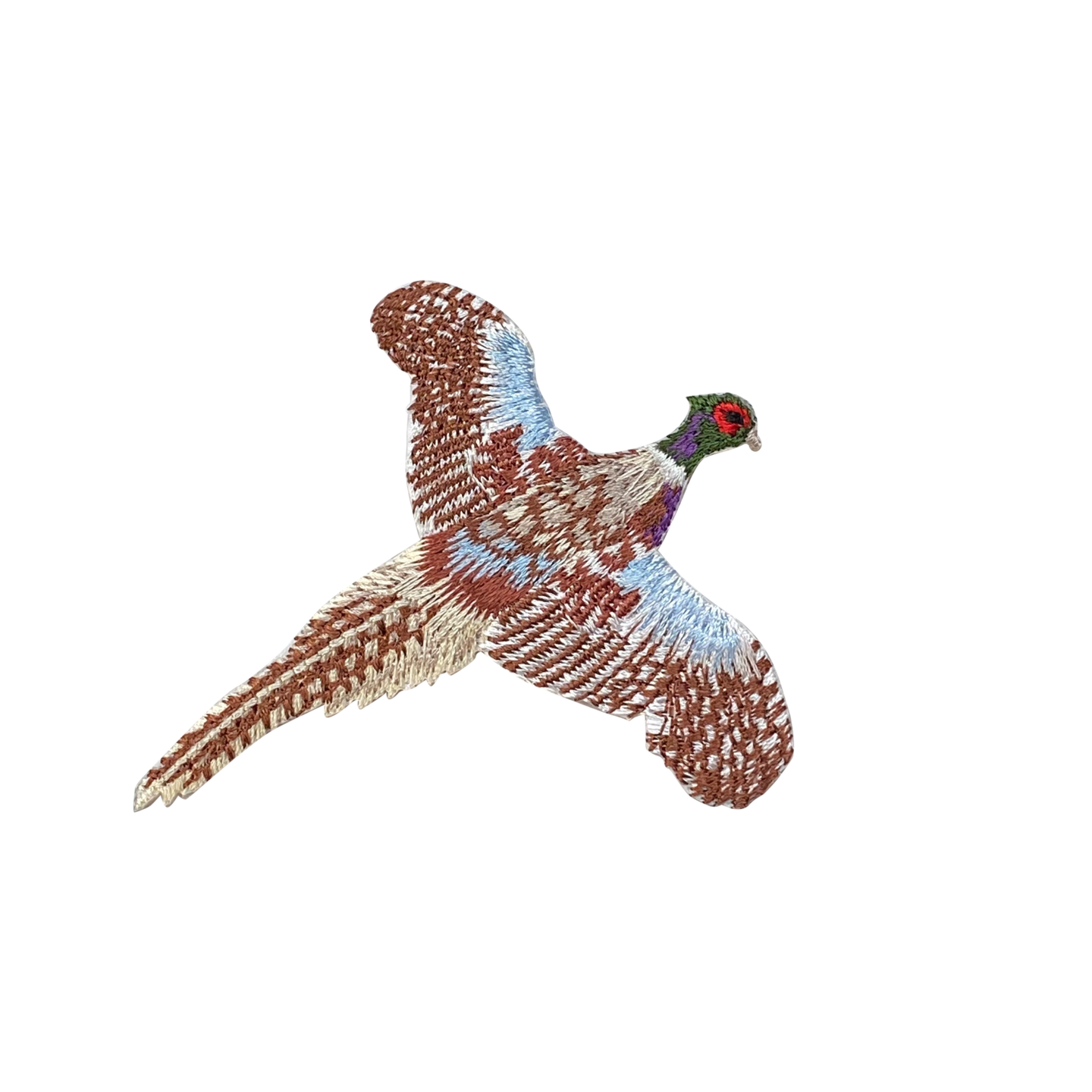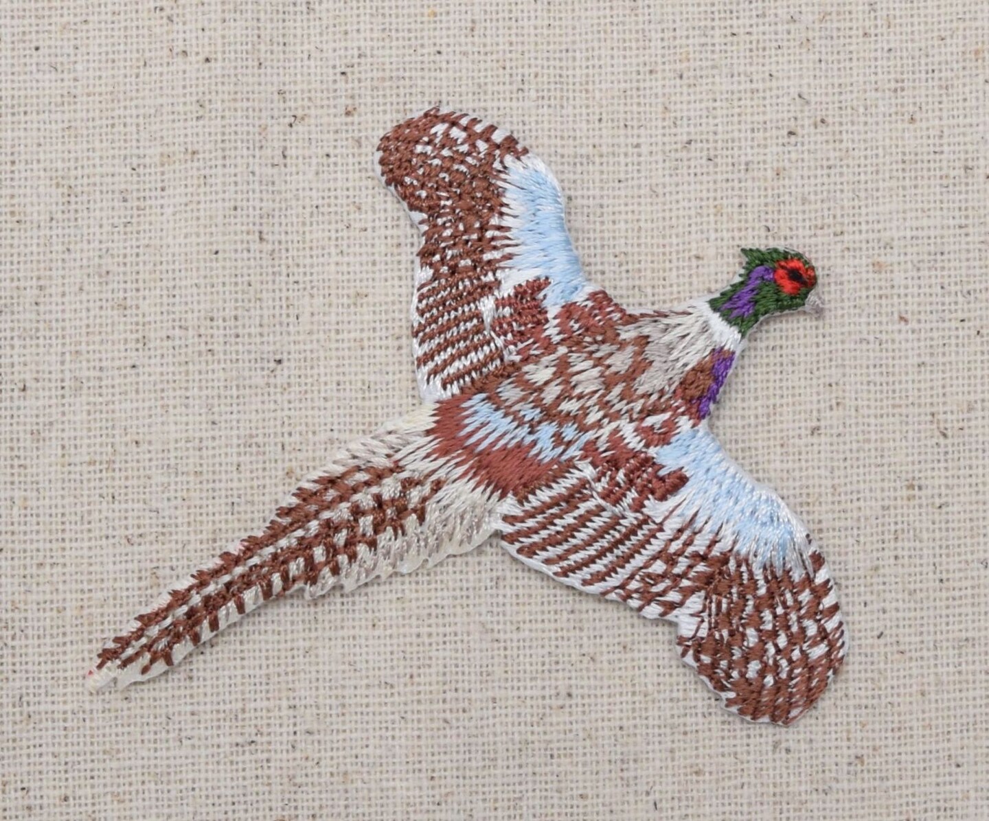 Ring-necked Pheasant Flying, Bird, Embroidered Iron on Patch