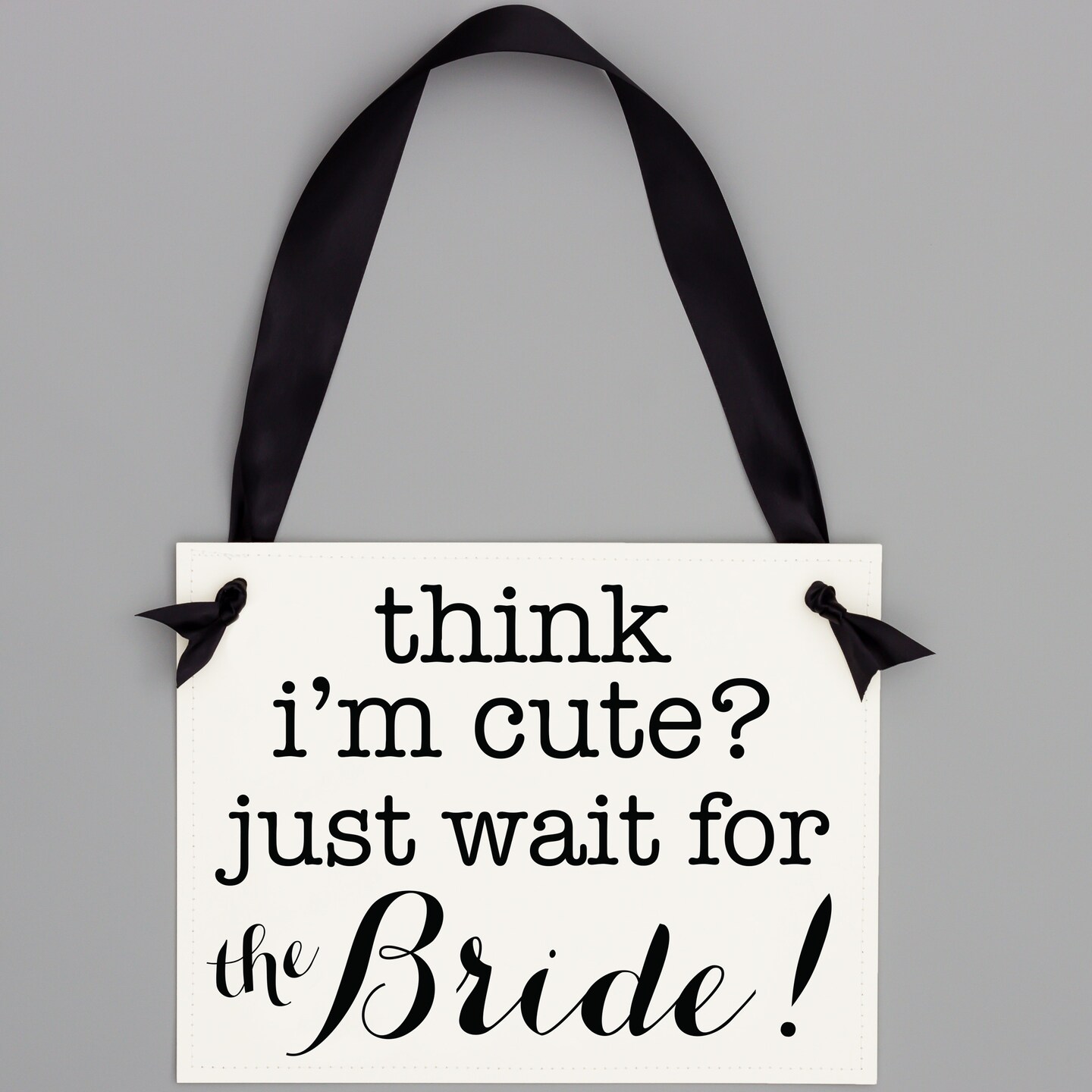 Ritzy Rose Cute Ring Bearer Sign - Black on 11x8in White Linen Cardstock with Black Ribbon