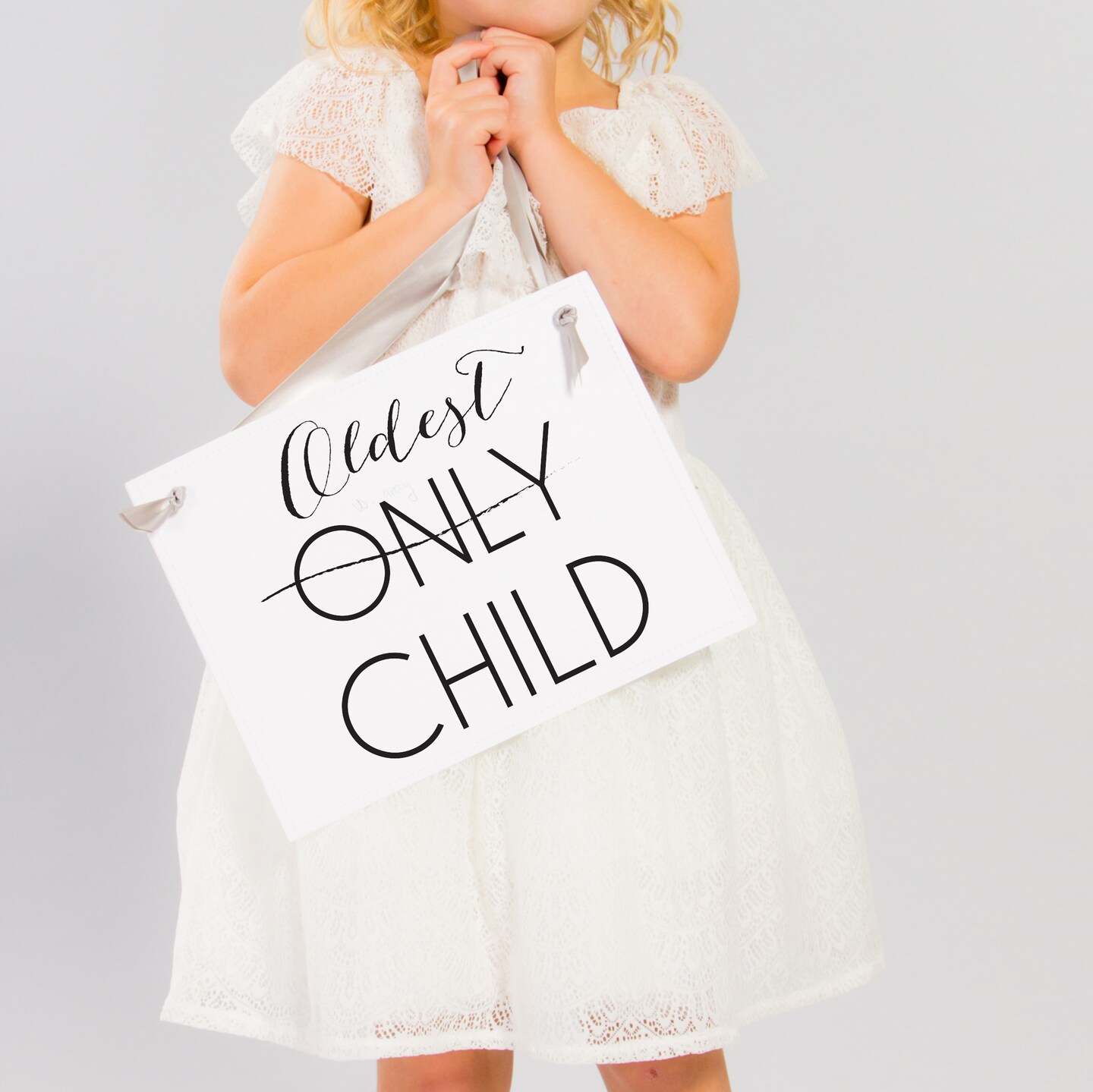 Ritzy Rose Pregnancy Announcement Sign - Black on 11x8in White Linen Cardstock with Gray Ribbon