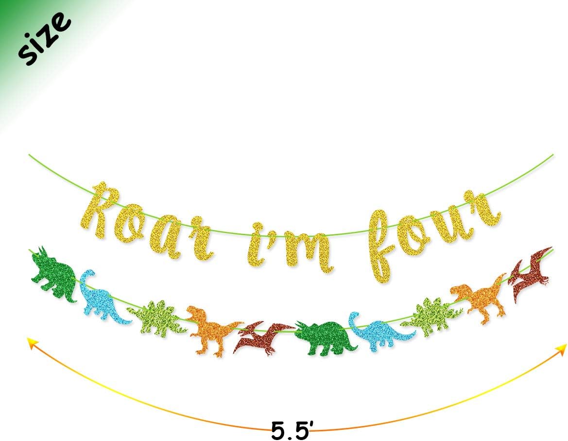 Roar I'm Four Banner Dinosaur Garland for Kids' 4th Dinosaur Birthday