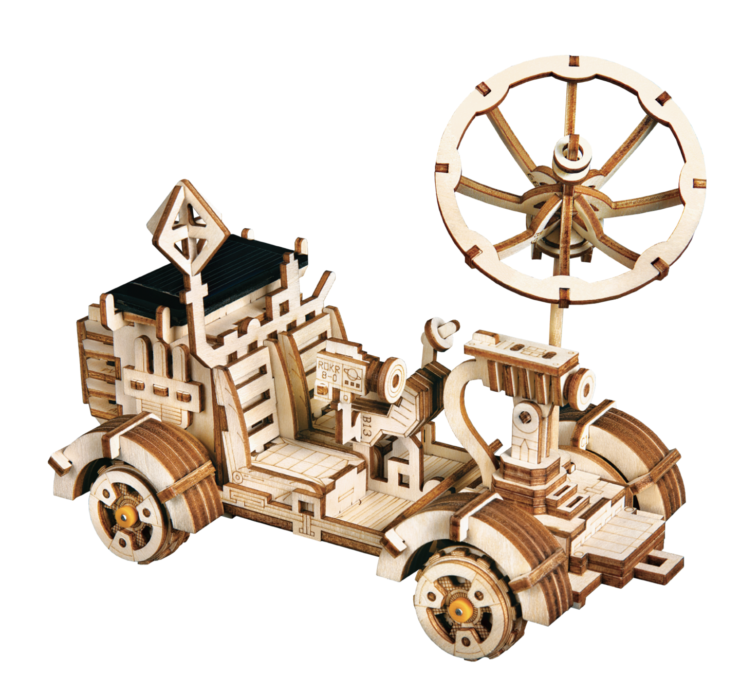 Robotime Moveable 3D Wooden STEM Project - LS402 Harbinger Rover Solar Energy Toy - Perfect Birthday Gift for Kids