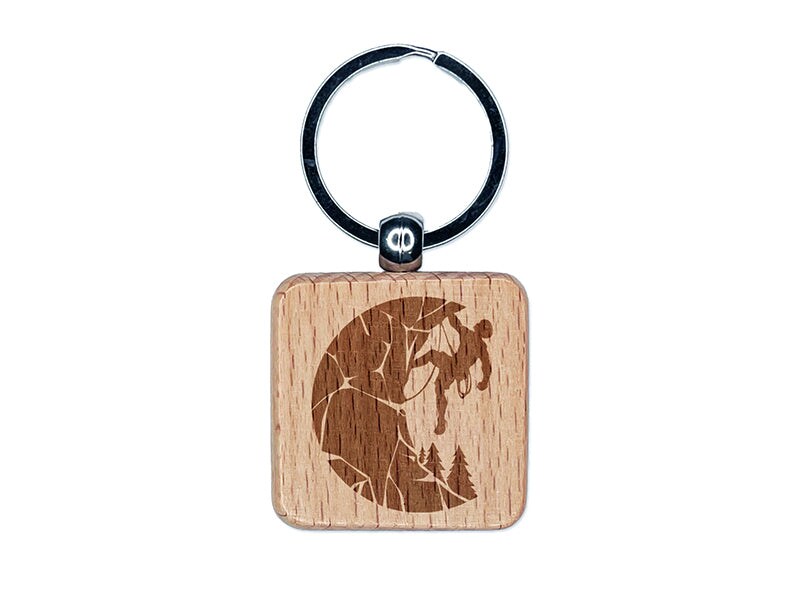 Rock Climbing Moon Stone Wall Mountain Cliff Engraved Wood Square Keychain Tag Charm