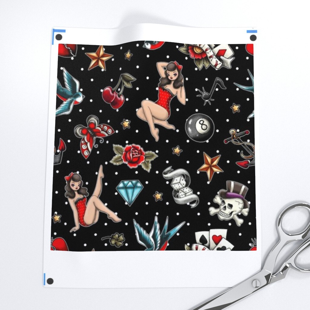 Rockabilly Tattoos Retro Vintage Pinup Custom Printed Fabric by Spoonflower Various Fabrics by the Yard or Fat Quarter
